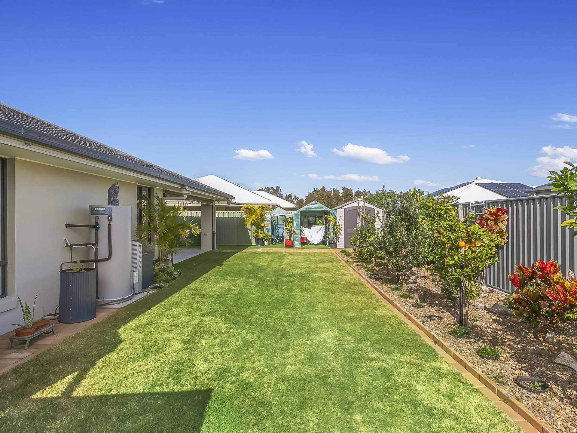 The home is further complemented by the 5kw Solar Edge Inverter with backup monitoring and 14kw Tesla Powerwall 2 battery, ducted reverse cycle air conditioning, easy care tiled floors, low maintenance landscaping and gardens, 6m x 7m concrete pad for parking the boat and caravan behind lockable gates, CCTV, stainless steel security screens and fly screens, modern blinds, and plantation shutters. There is space for a good-sized pool and gazebo.