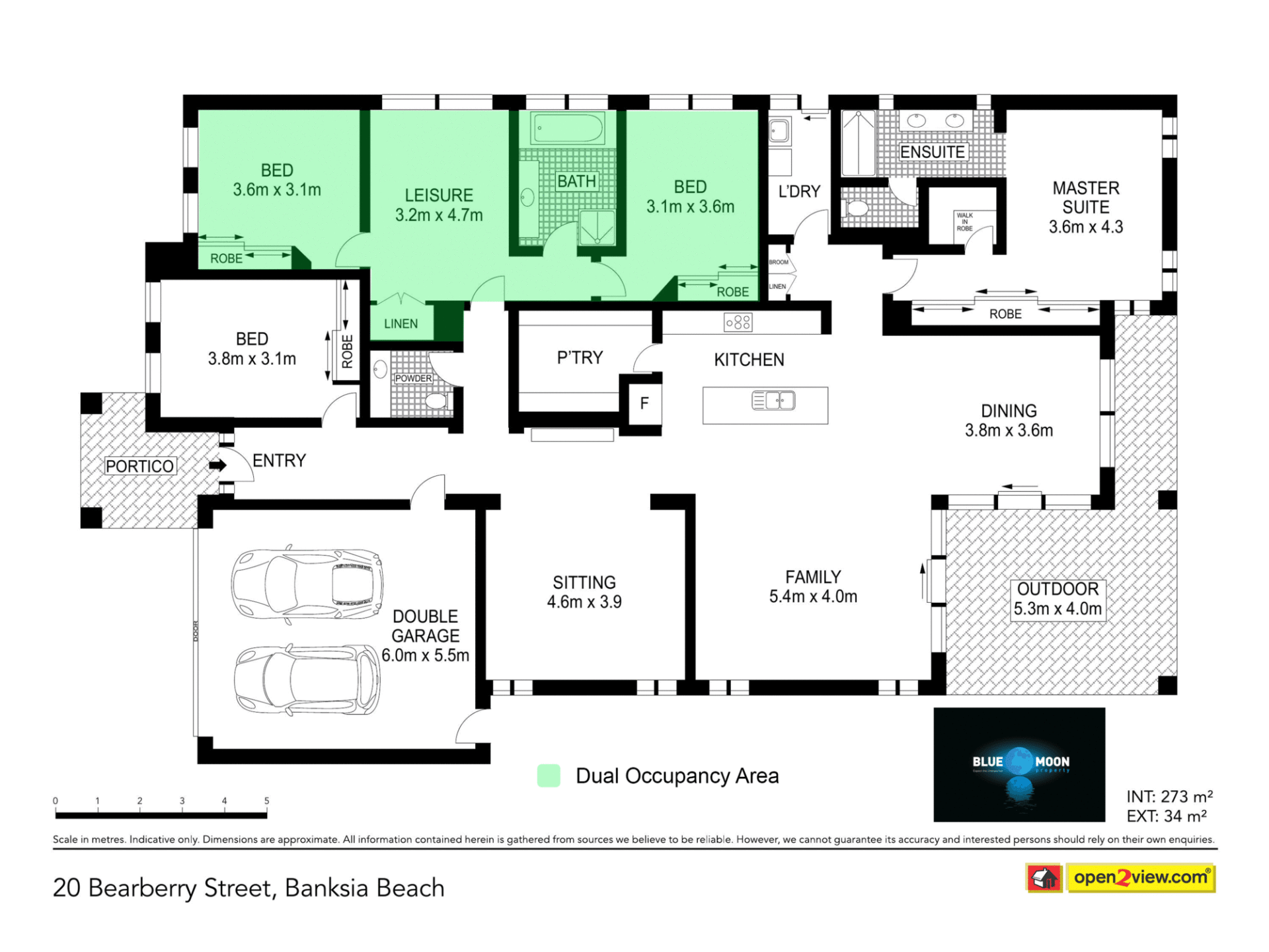 The cleverly designed spacious open floor plan provides four bedrooms, four internal living areas + covered outdoor living, two and a half bathrooms, spacious entertainer’s kitchen with butler’s pantry.  Dual living options are catered for by simply closing a door making bedrooms 3 and 4, leisure and bathroom separate from the main house (refer shaded area of floor plan) ideal as teenagers / in-law /Airbnb living.