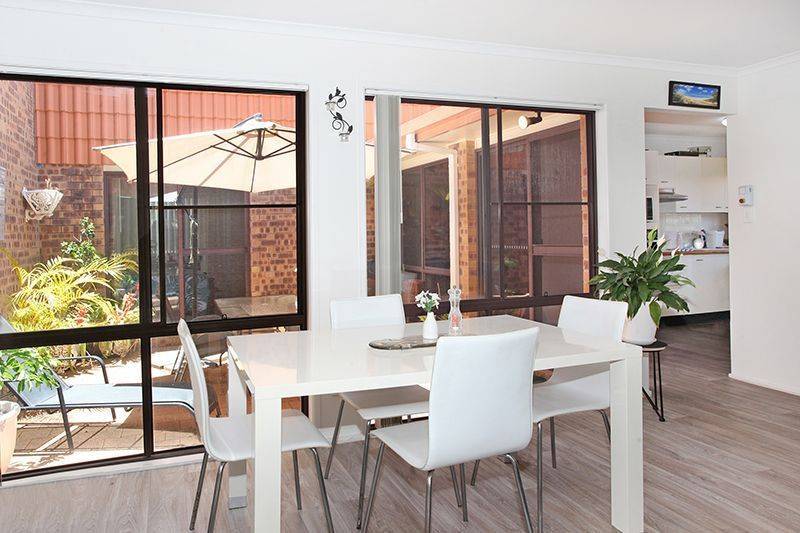 Neat, tidy 2 bedroom unit that is well presented throughout and holds a lovely coastal feel. Both generous bedrooms have built ins, fans and offers air-conditioning. Extra space within this villa with an atrium designed courtyard that offers another living area for your enjoyment.