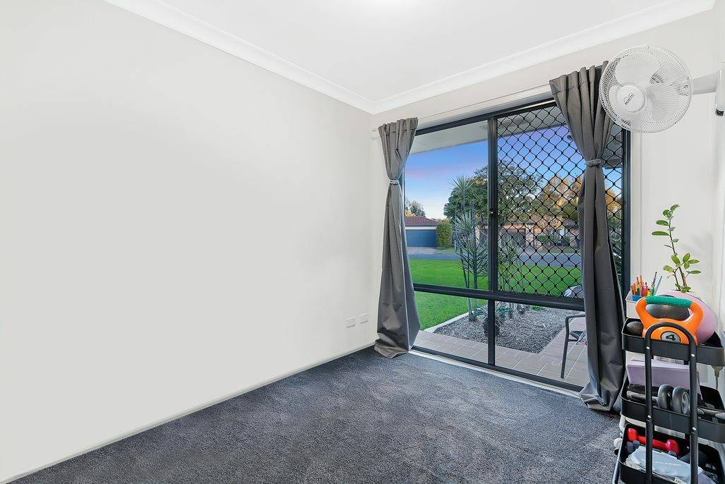 The heart of this home comprises of a spacious open plan kitchen with plenty of storage, a dining and living area which are complimented by a separate, airconditioned main lounge. It has 4 generous bedrooms all with built in robes, the third bedroom being airconditioned, and ceiling fans throughout. You also have extra space with a separate study / 5th bedroom, and security screens on windows and doors.