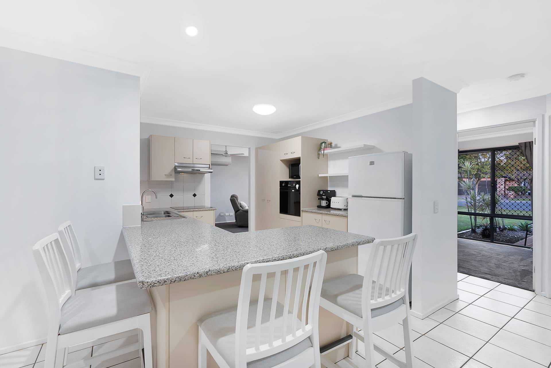 Open plan kitchen, living and dining areas