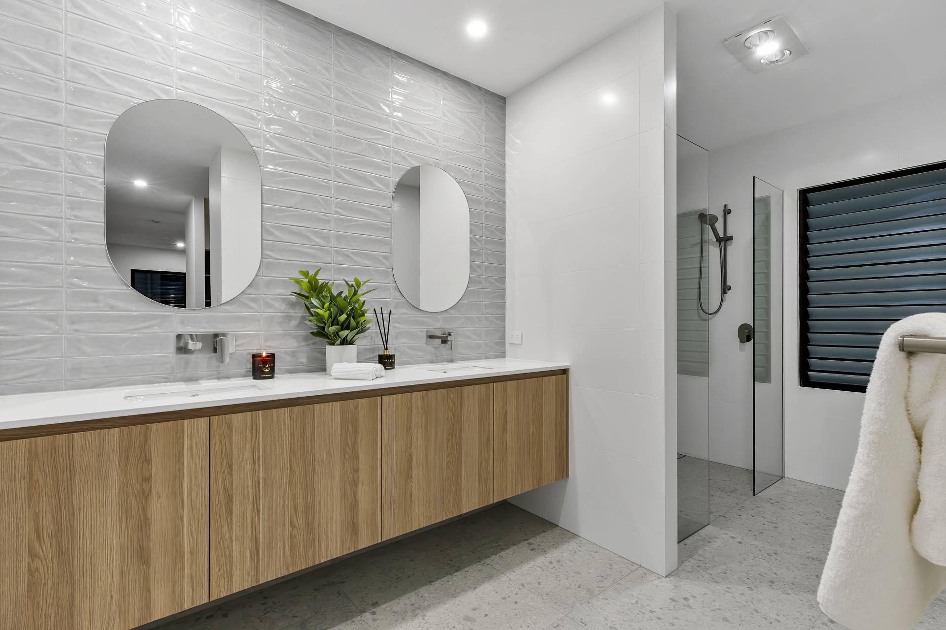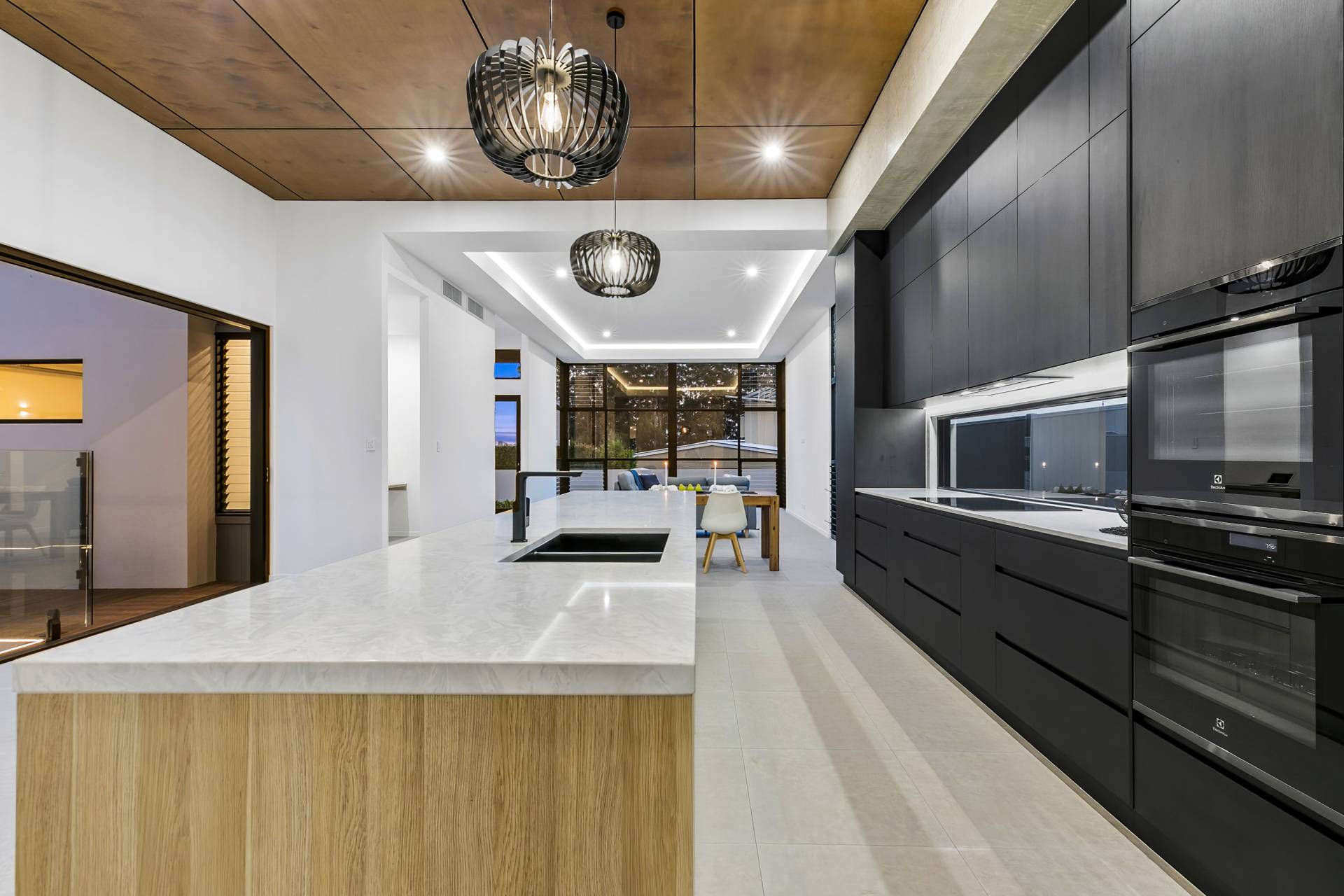 Stunning 60mil “Alba” marble finish benchtops with feature LED lighting