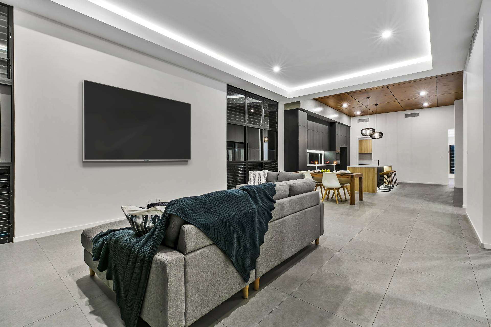 Feature hidden LED lighting provides a special theatre like atmosphere in the living quarters