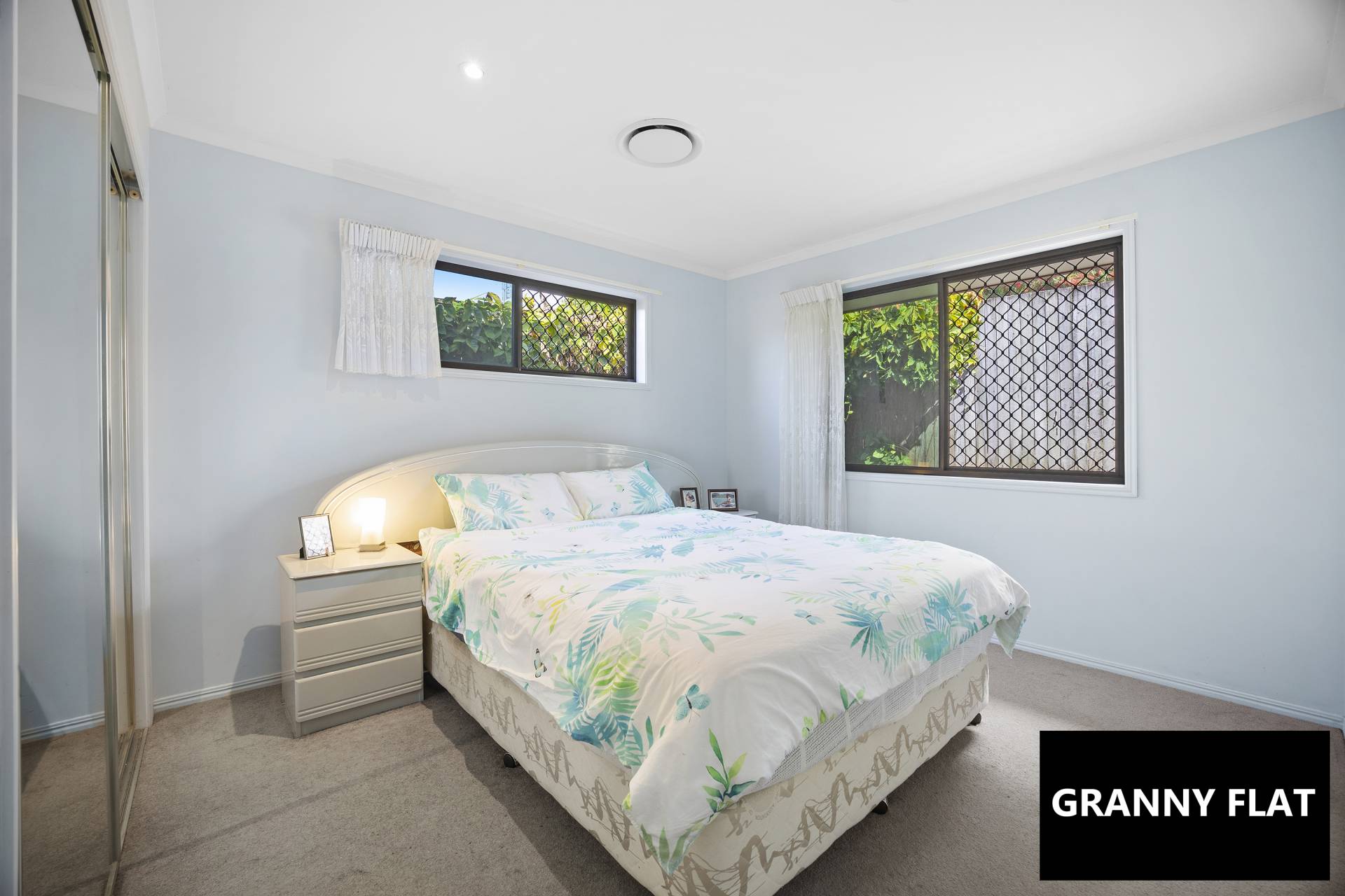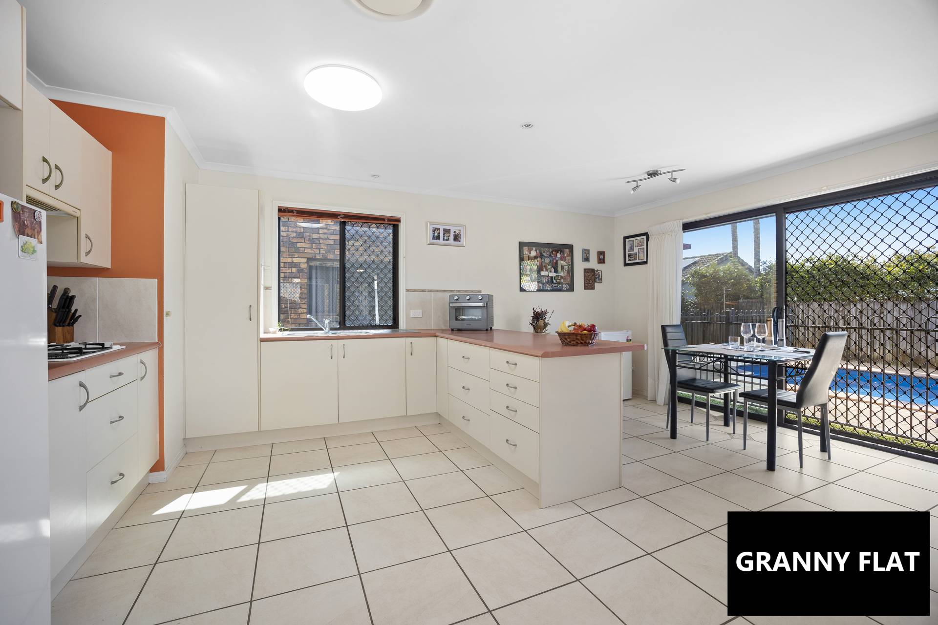 With its own separate entrance down the side of the house and the benefit of secure third car accom, the granny flat also boasts zoned ducted AC, security screens throughout and its own alfresco entertaining area by the pool.