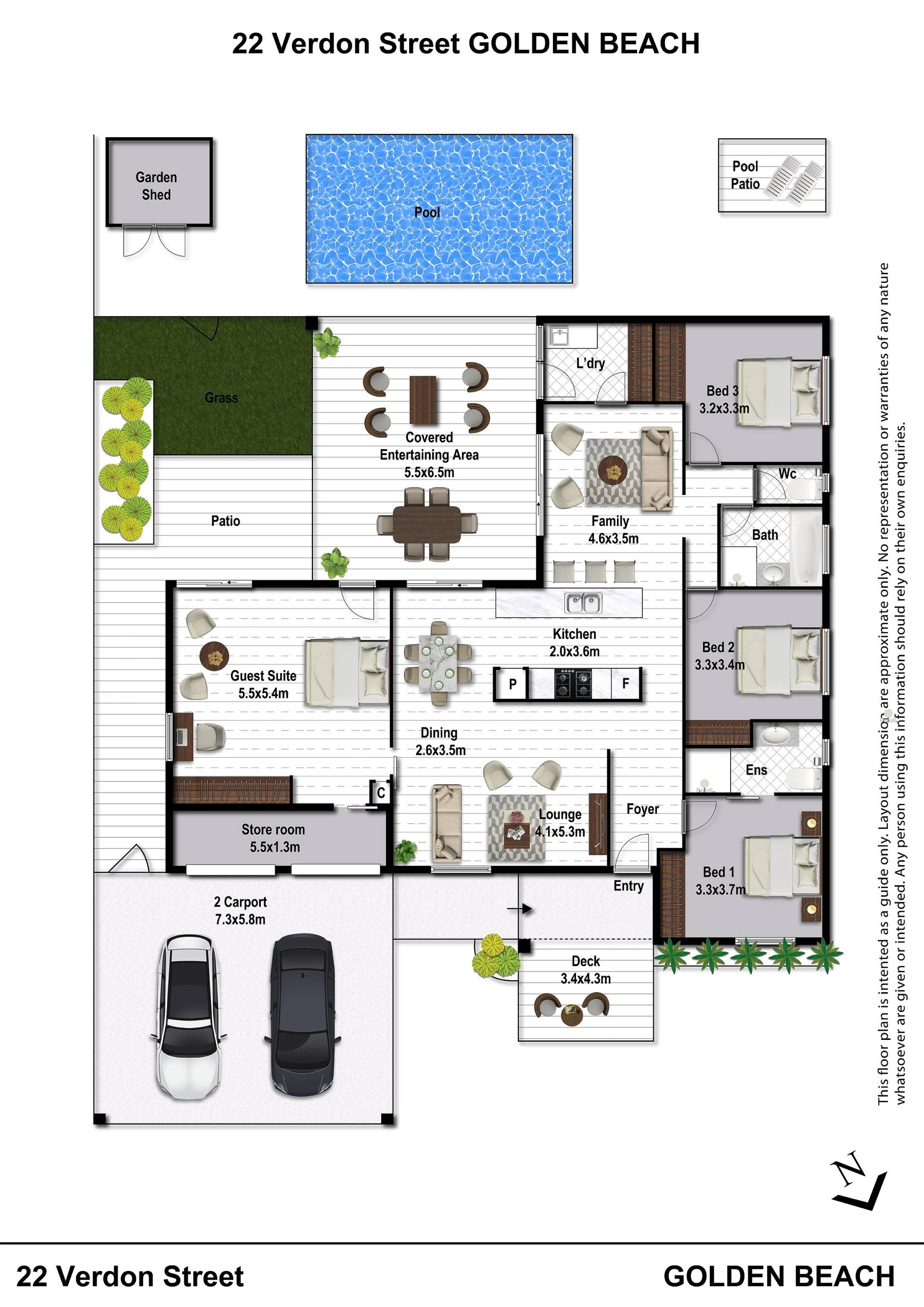 Positioned on a 651m2 block just across the road from a park and children’s playground and just a few minutes’ walk to the foreshore of Golden Beach where you will find barbeque areas, a jetty and a choice of boat ramps.