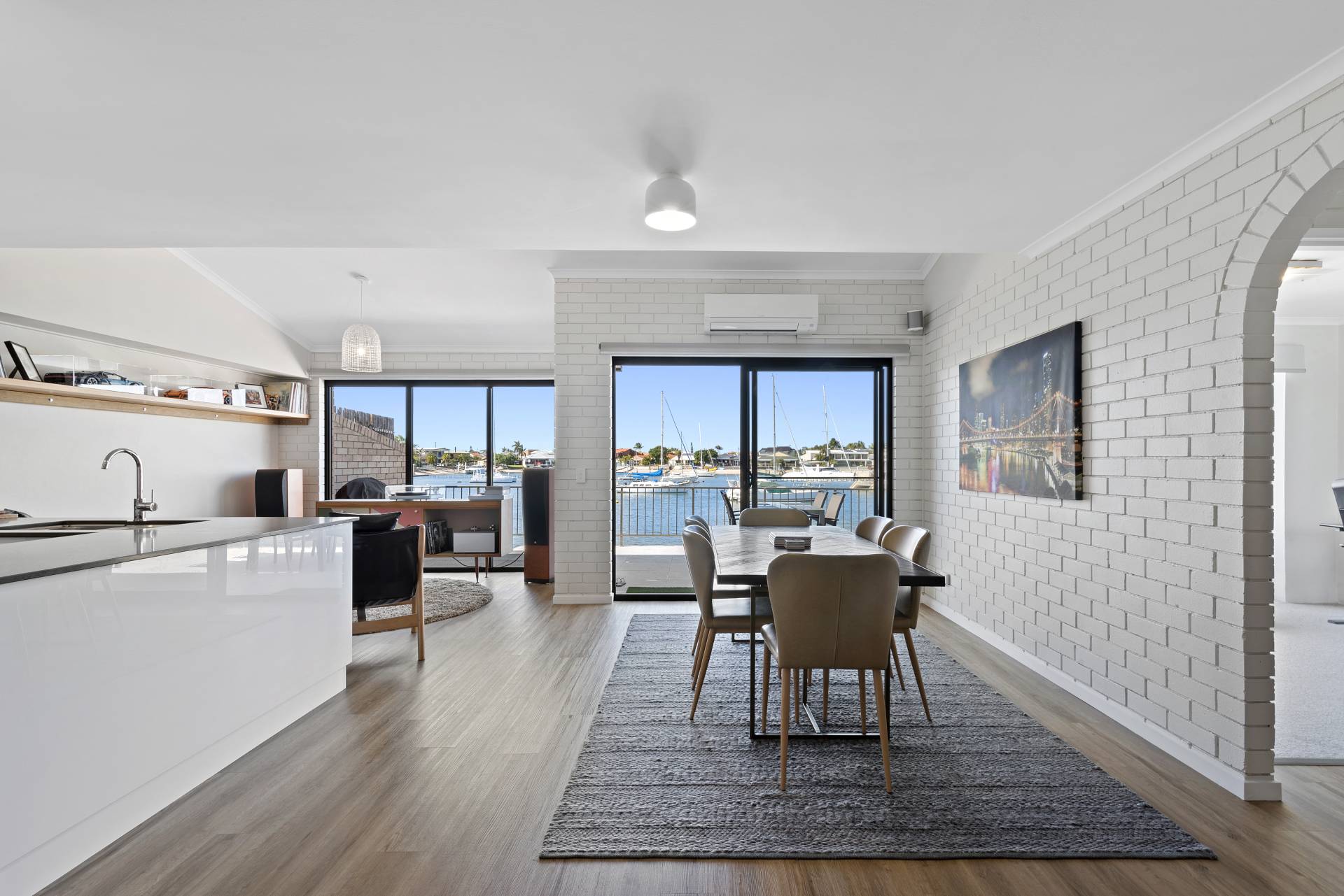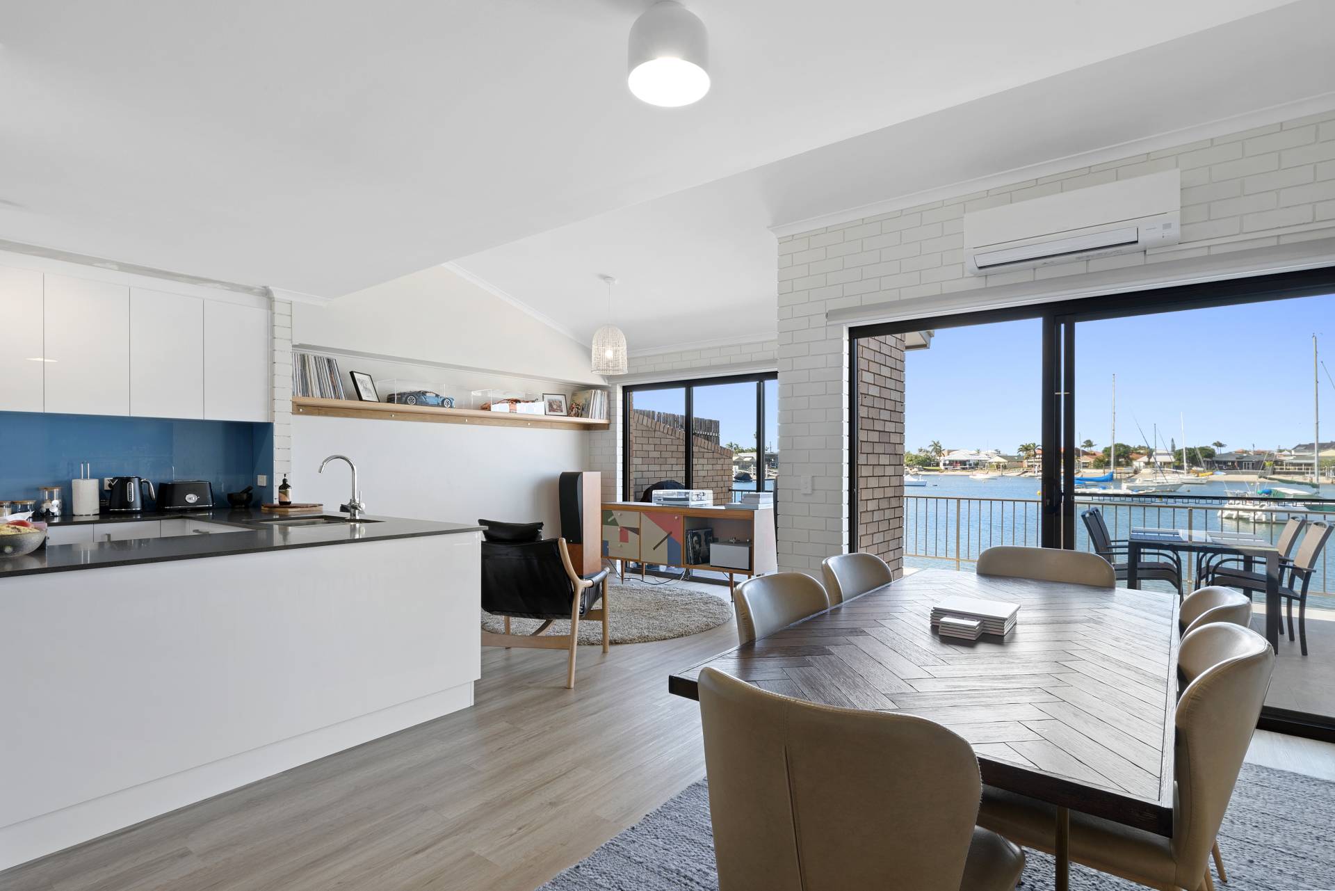 Features three bedrooms, (Master has walk in robe and Ensuite) two bathrooms, kitchen, open plan living and dining, opening to alfresco tiled balcony to enjoy gentle breezes and delightful water views, lock up garage with tandem covered storage for boat, bikes, canoes etc., access to a private boat ramp and all in a boutique complex of only eight apartments (Only 6 have water views). Light and airy throughout with a soft, neutral colour scheme, this unit has been renovated with new kitchen and bathrooms all bedrooms and living area are air conditioned and has a calming and relaxed ambiance that is extremely welcoming and warm.