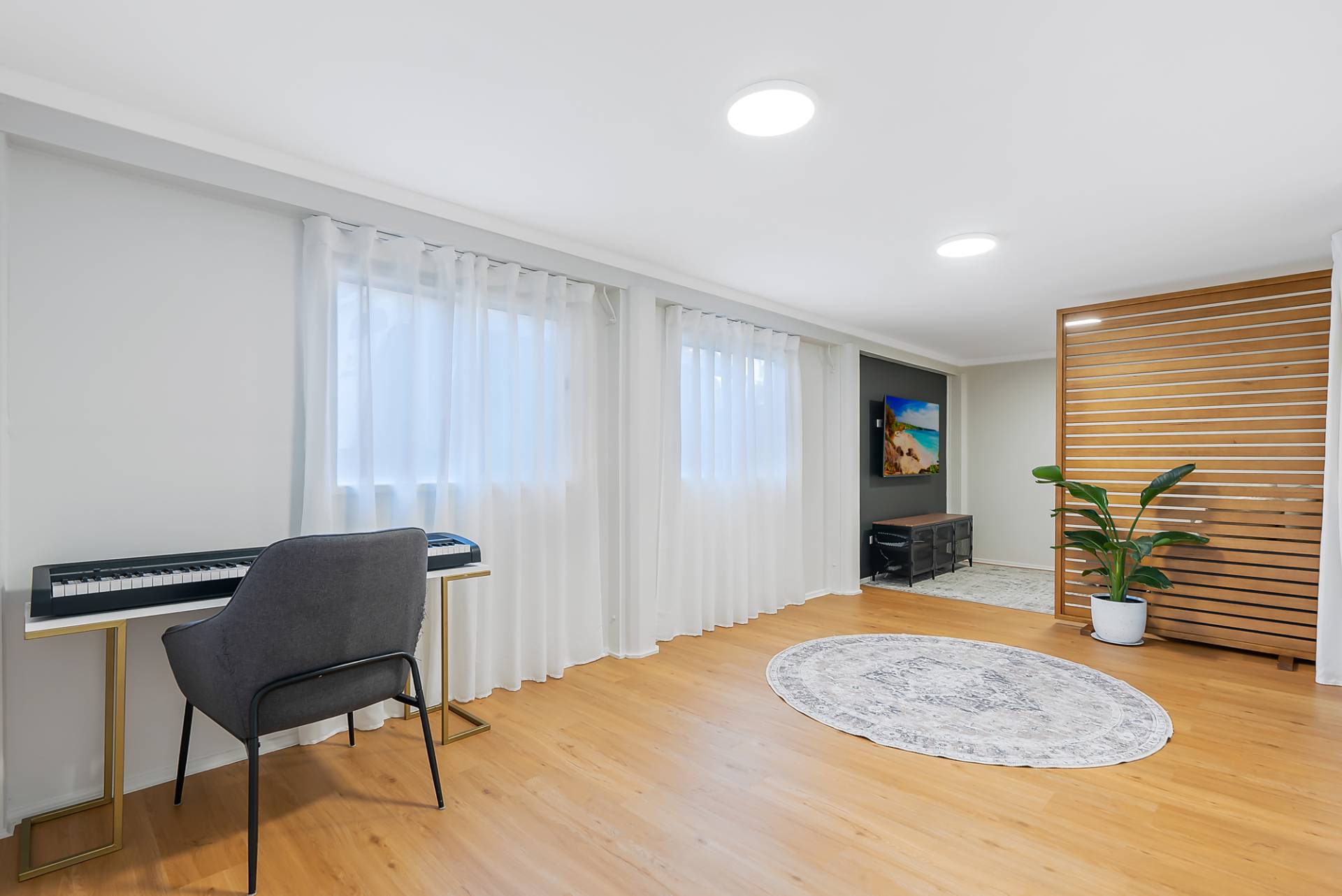 Downstairs comprises of the garage with internal access and various utility rooms that have been used as media, gym and workshop spaces. At the rear of the home is a large undercover entertaining area which leads onto the manicured, fully fenced back yard where the kids can play under the shade of the huge macadamia tree.
