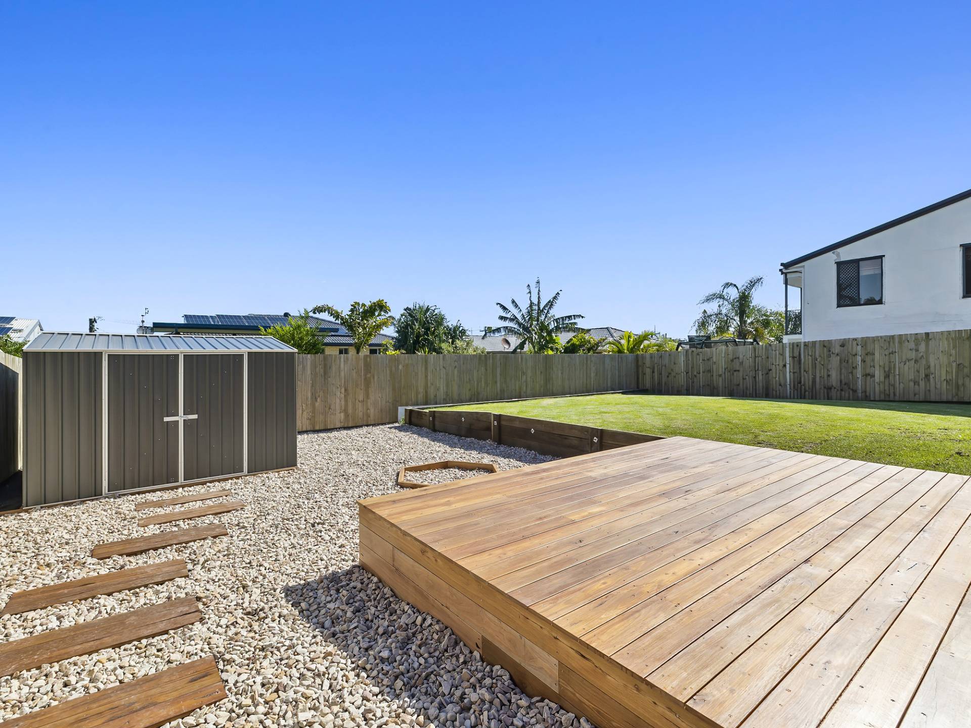 Exit the living area onto a timber deck ideal for morning cuppa or afternoon drinks