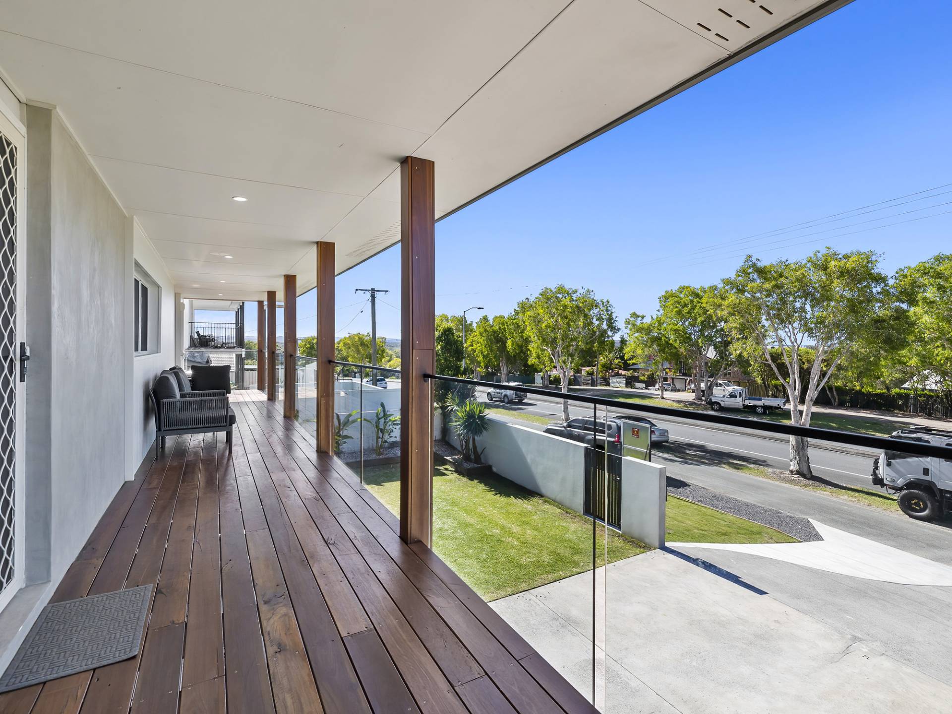 Rear balcony overlooking backyard