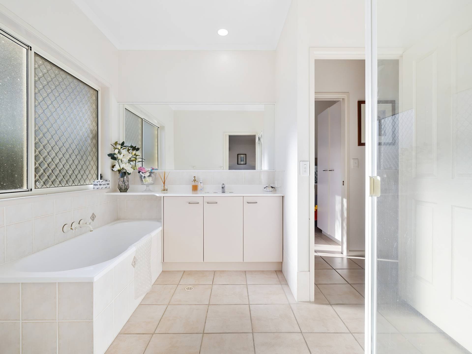 The clever floor plan has the master suite situated separately in the home and featuring a generous robe, ensuite bathroom and views outside to the pool.