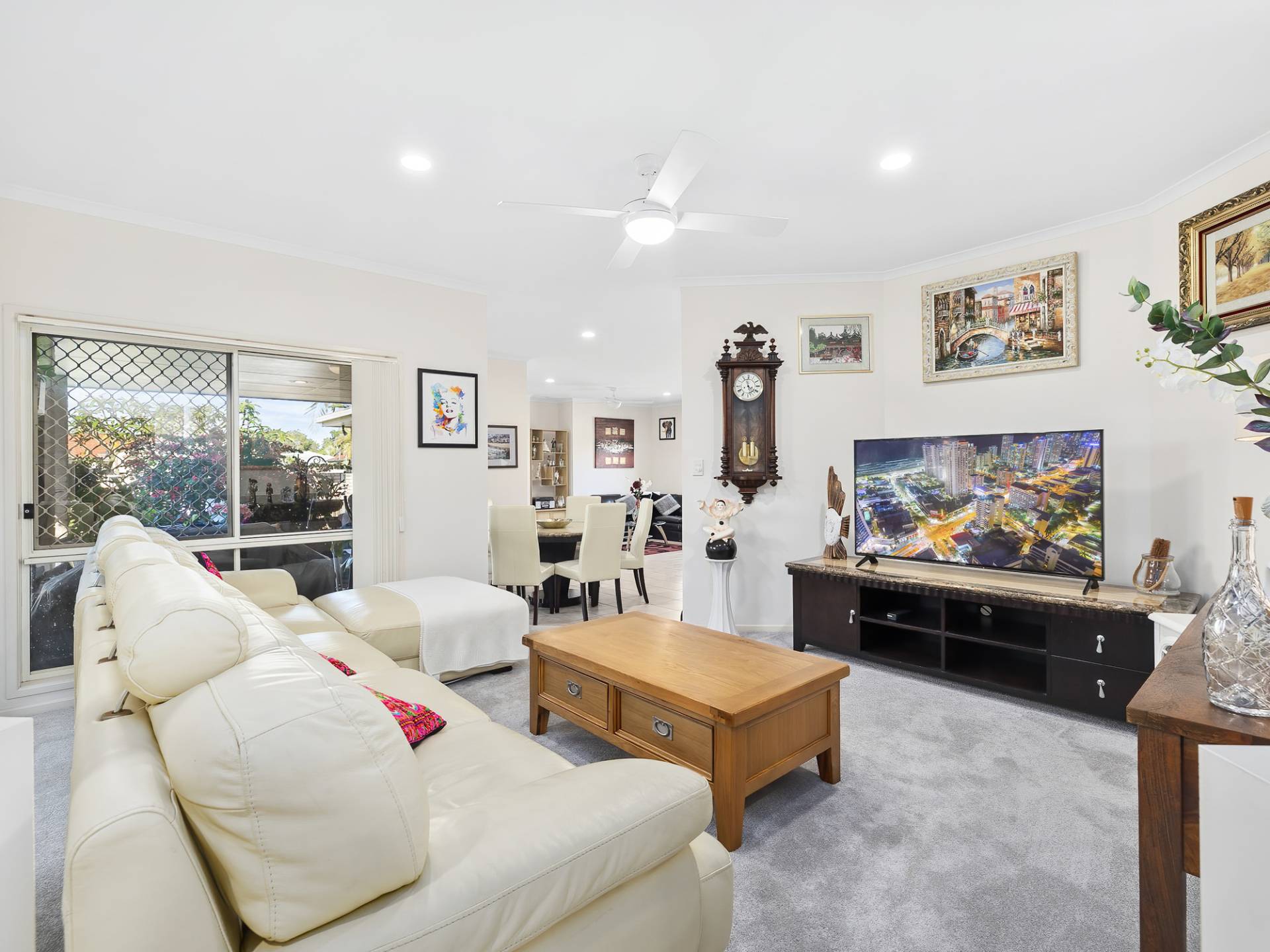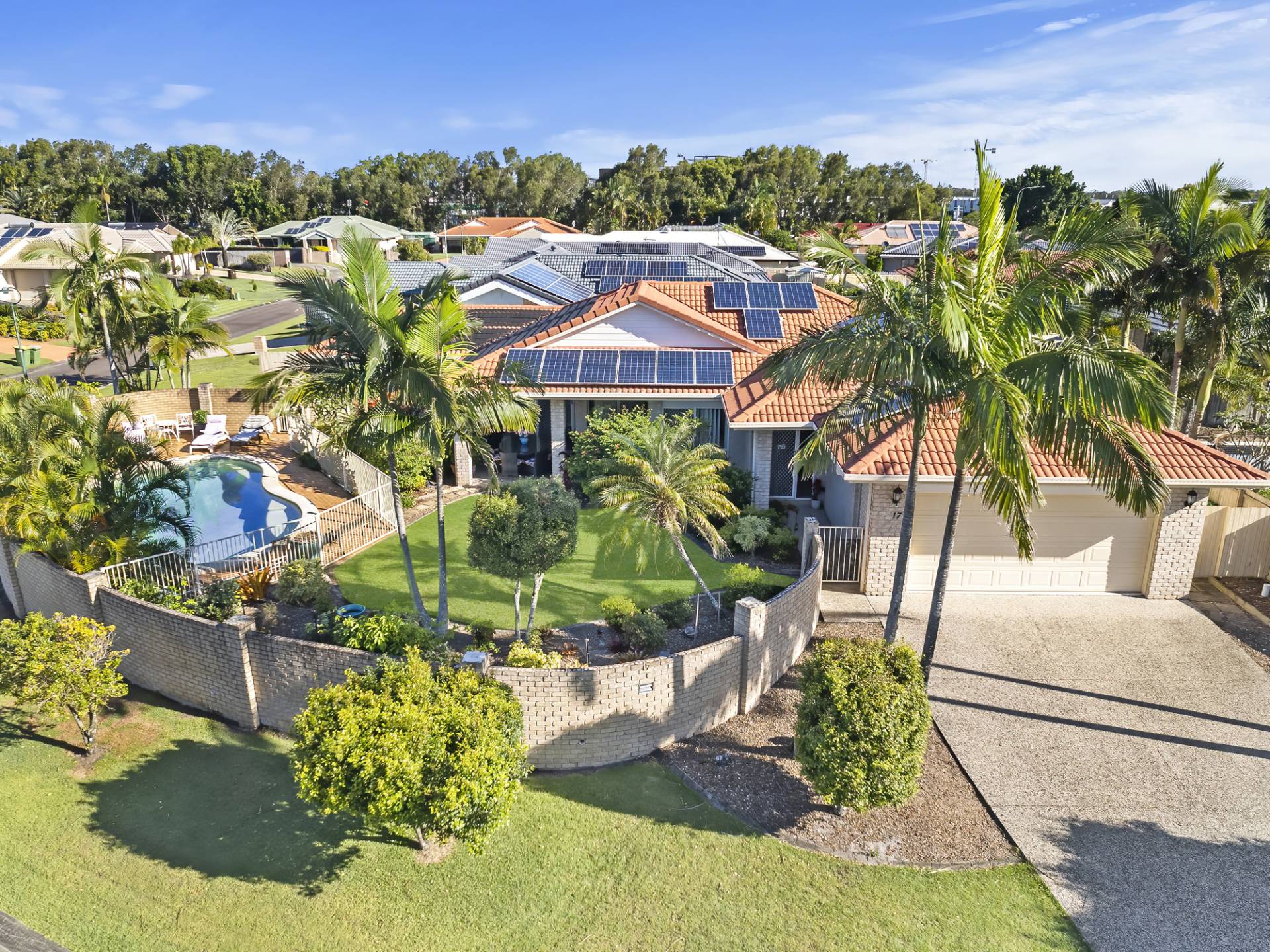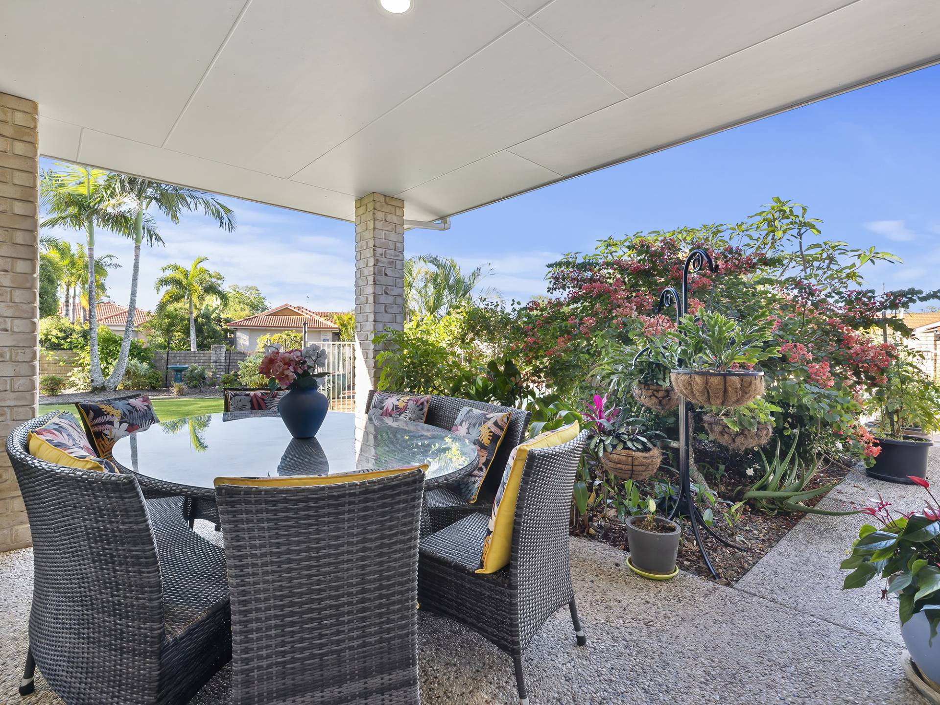 Lush tropical gardens overlook the sparkling solar heated inground swimming pool and the dual driveways offer secure storage for a large caravan or boat.