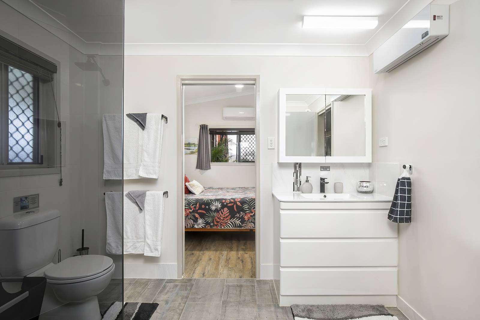 - A teenagers retreat or Man Cave is situated just in behind the new residence as another separate dwelling and it has a plumbed in sink and air-conditioning so this could be a large 5th bedroom (currently the best Man Cave with bar in Boonooroo!)