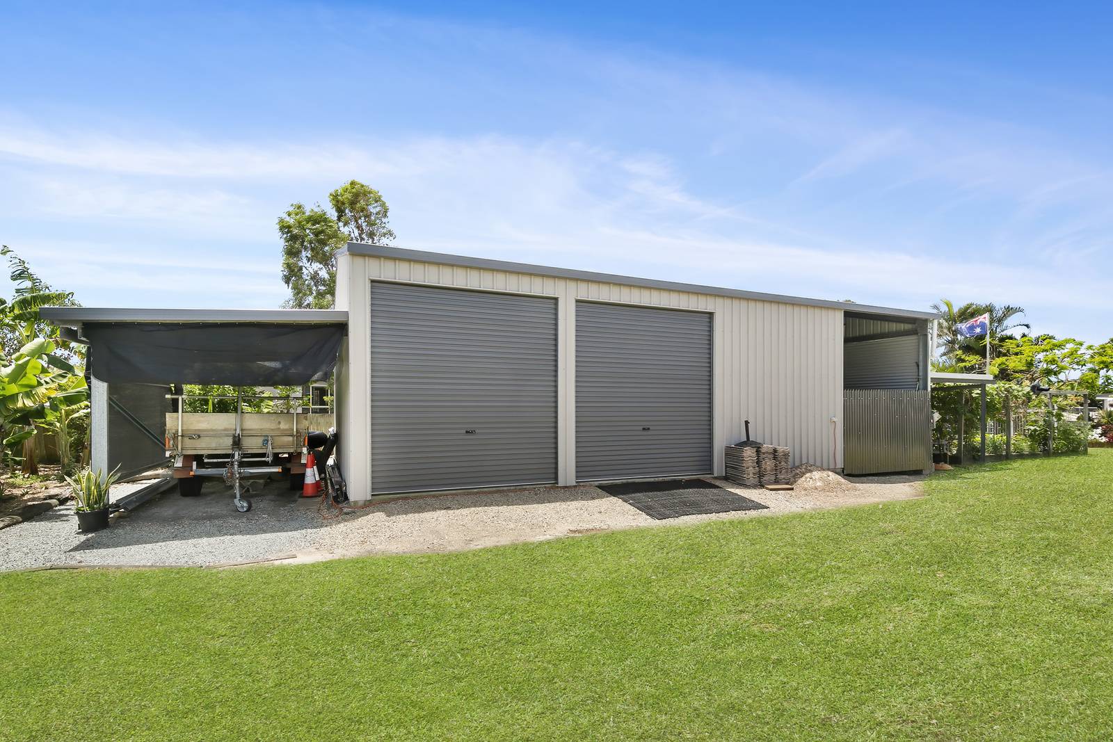 - A large lockable 3 bay shed plus 3 carports off the shed one with sufficient height for a caravan or boat.