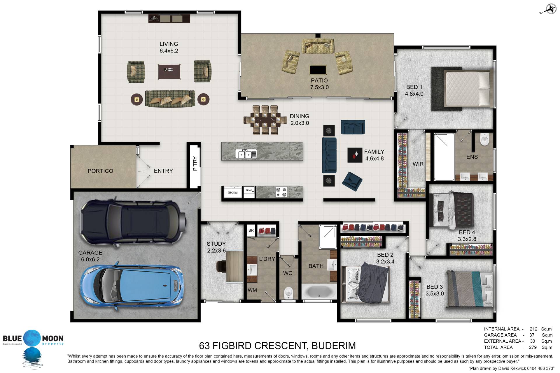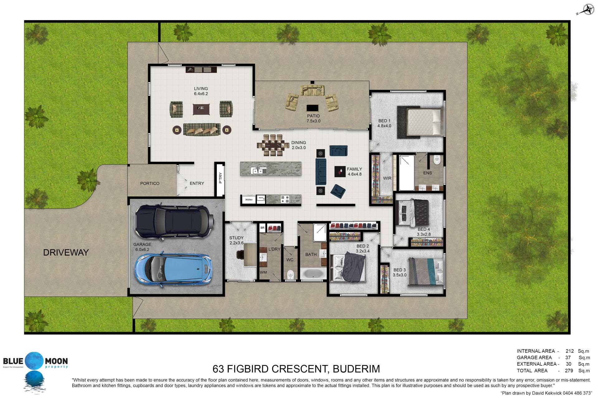 • 4 spacious bedrooms with built-in robes plus study with direct access outside