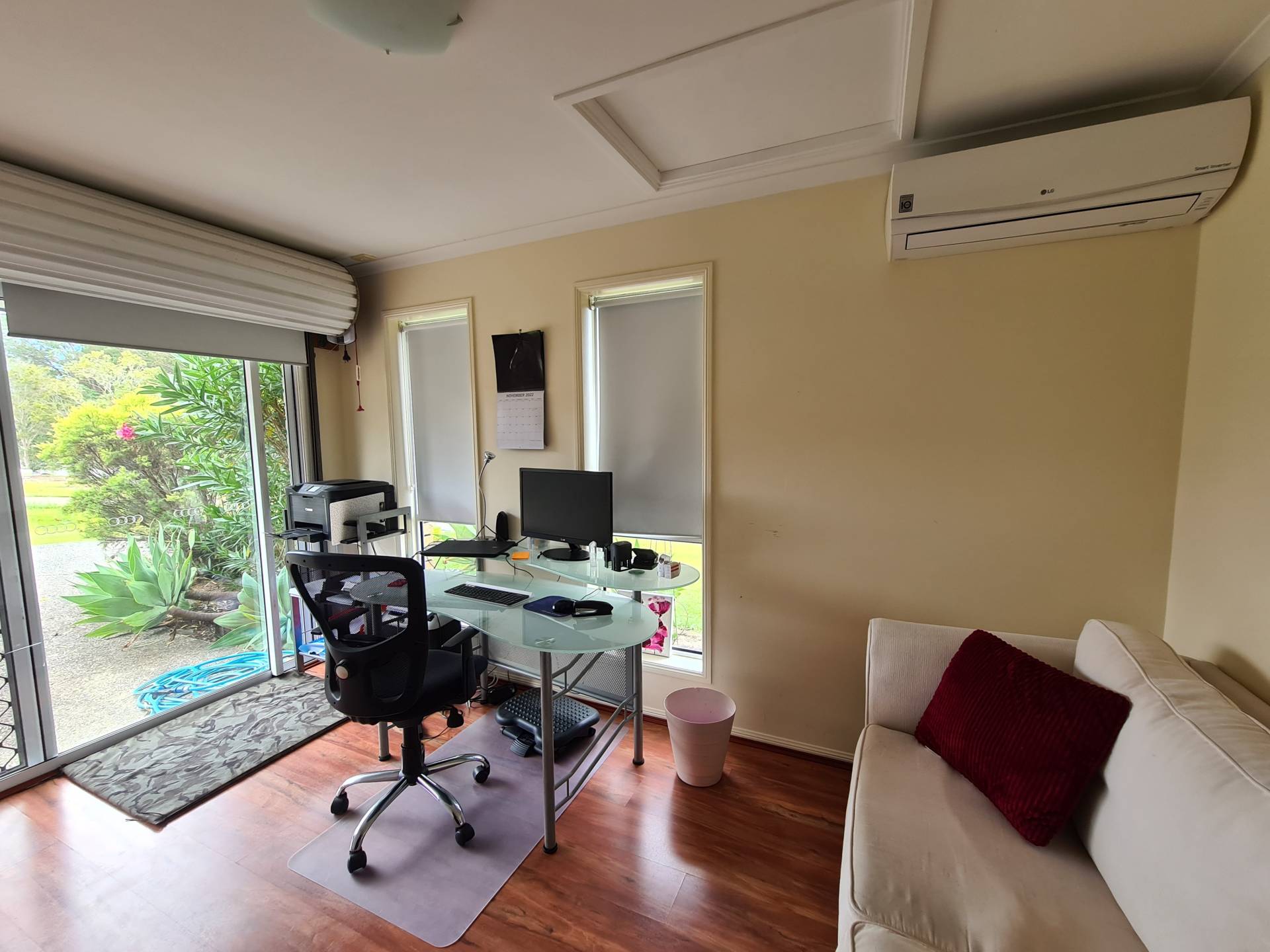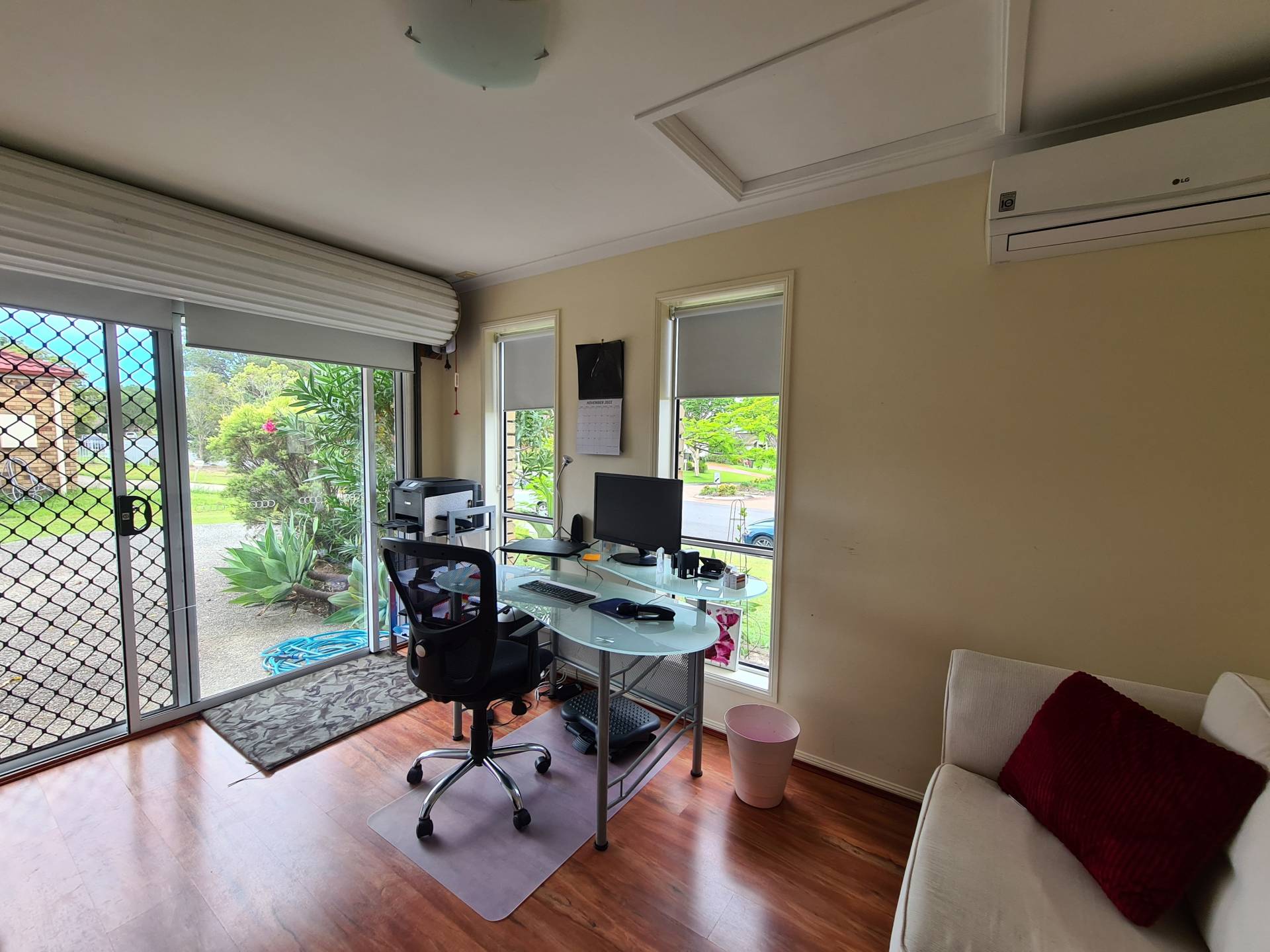 One garage has been converted into a handy office space. Single garage plus storage and garden shed.