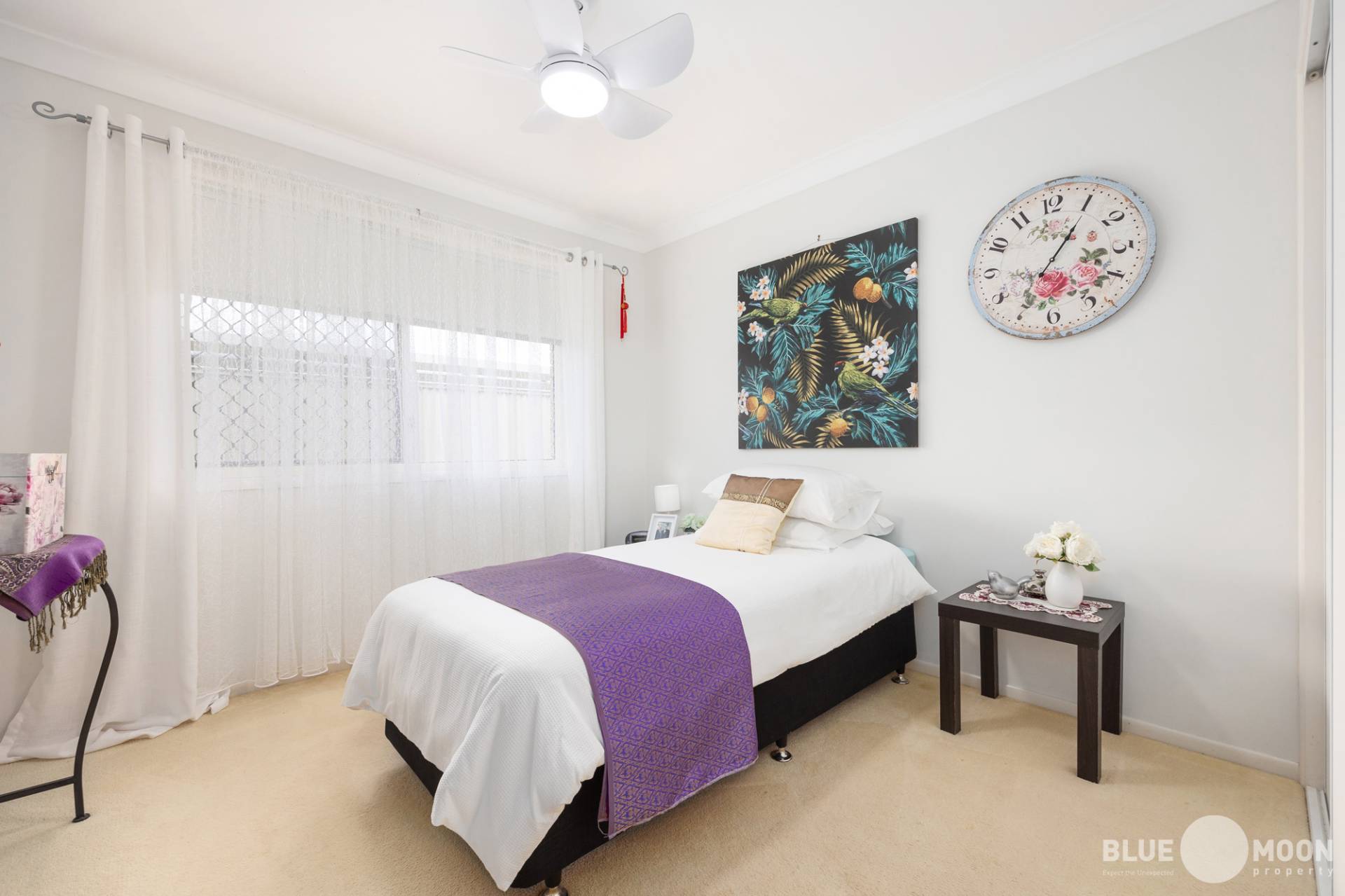 The generous sized, master suite is nestled privately away from the other bedrooms, providing a private parents retreat with ensuite and walk in robe.  The master suite also offers views to the nursery/greenhouse and direct access outside through a sliding door.