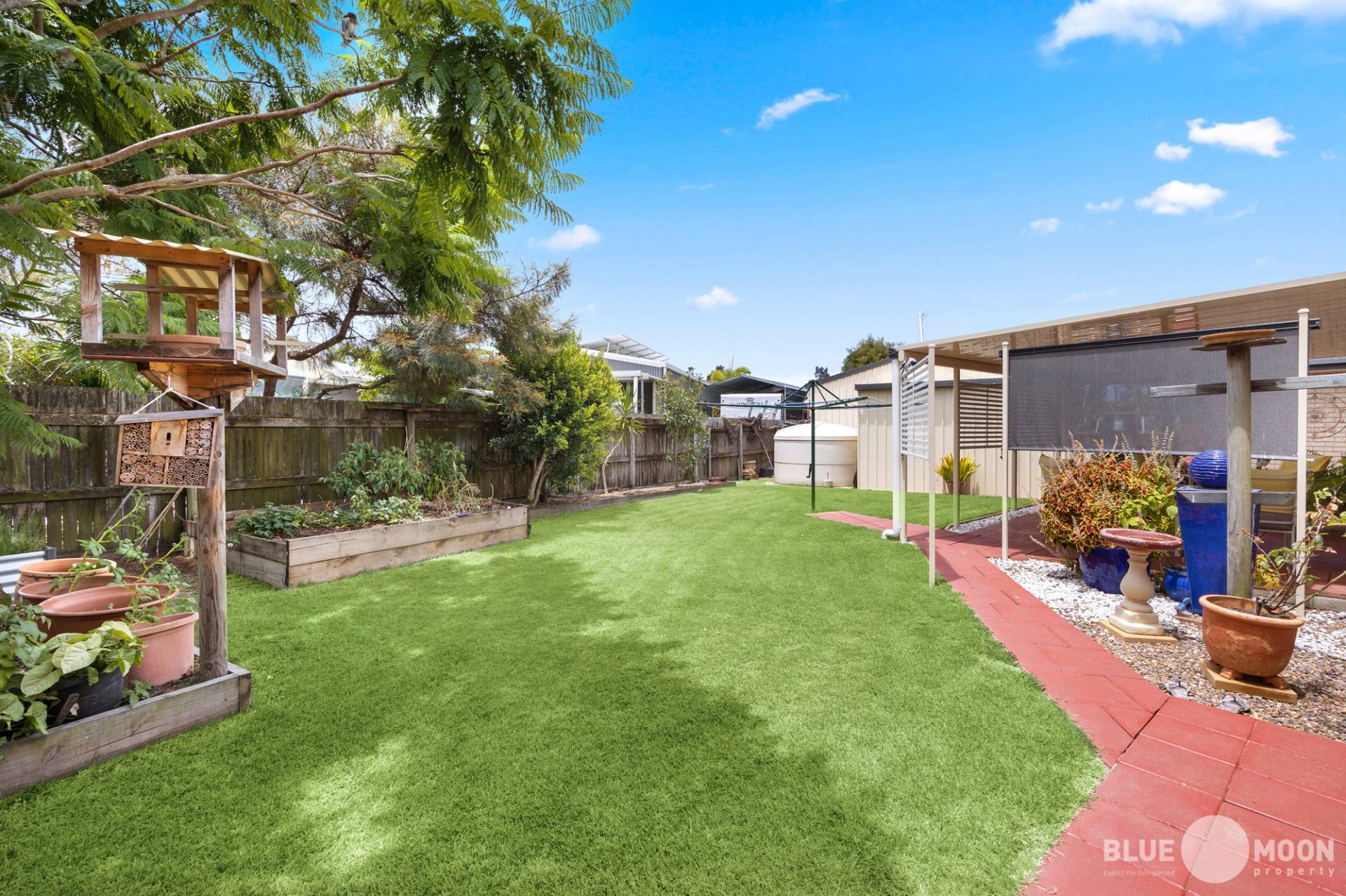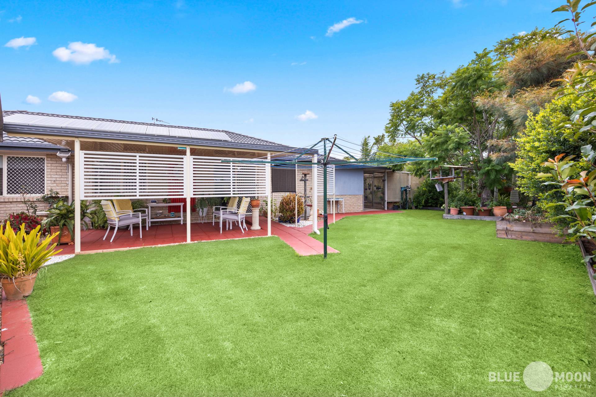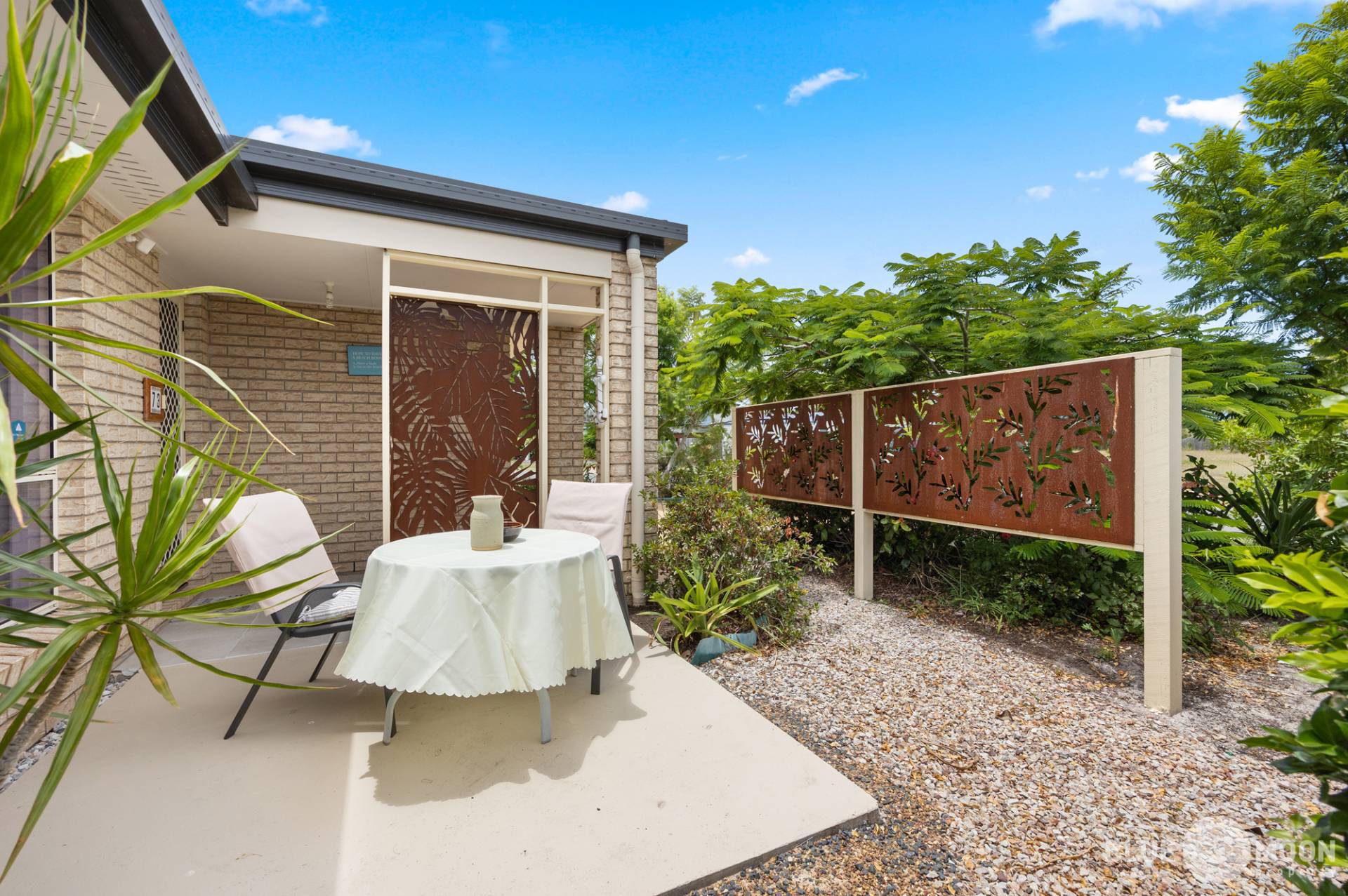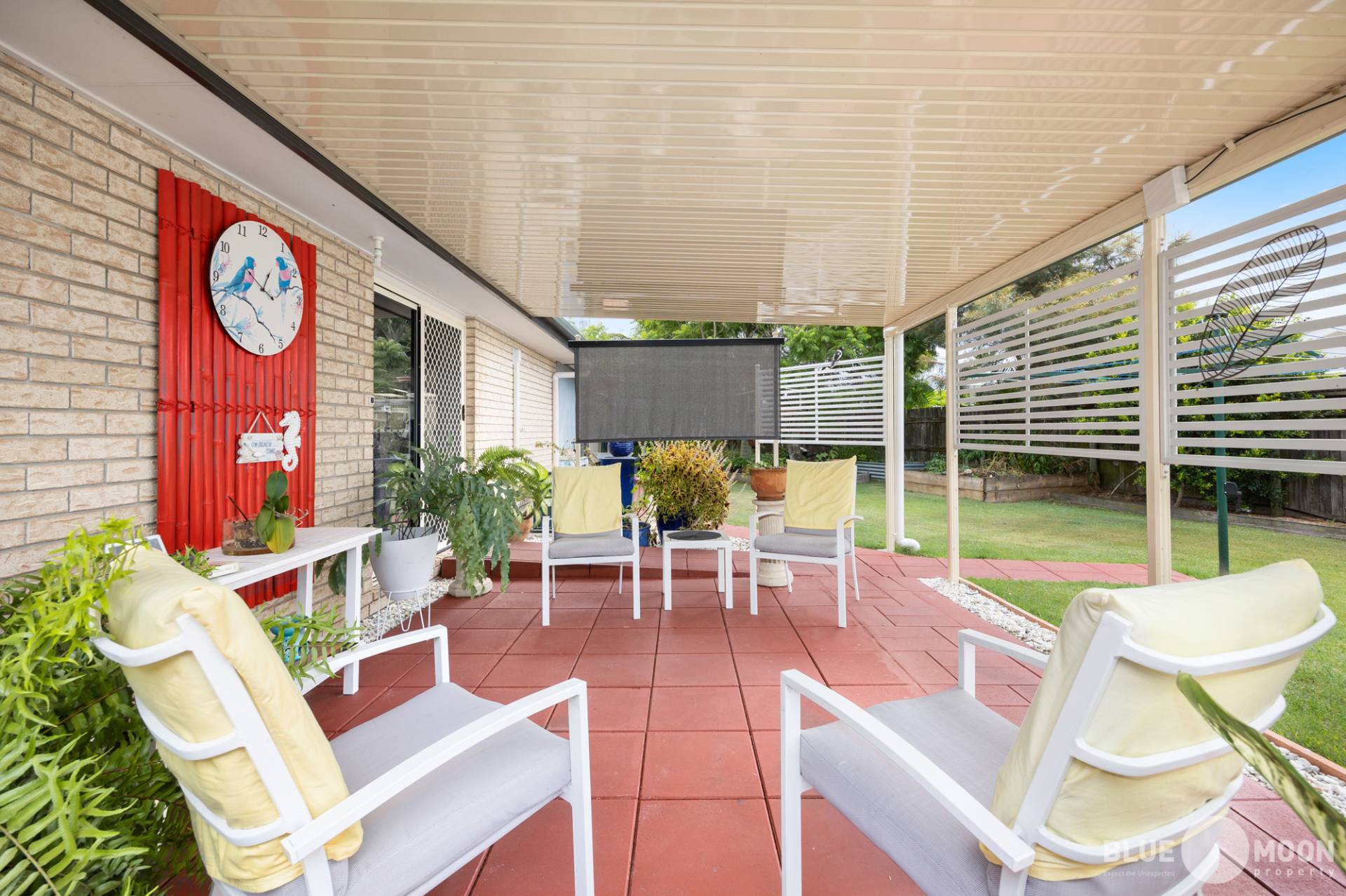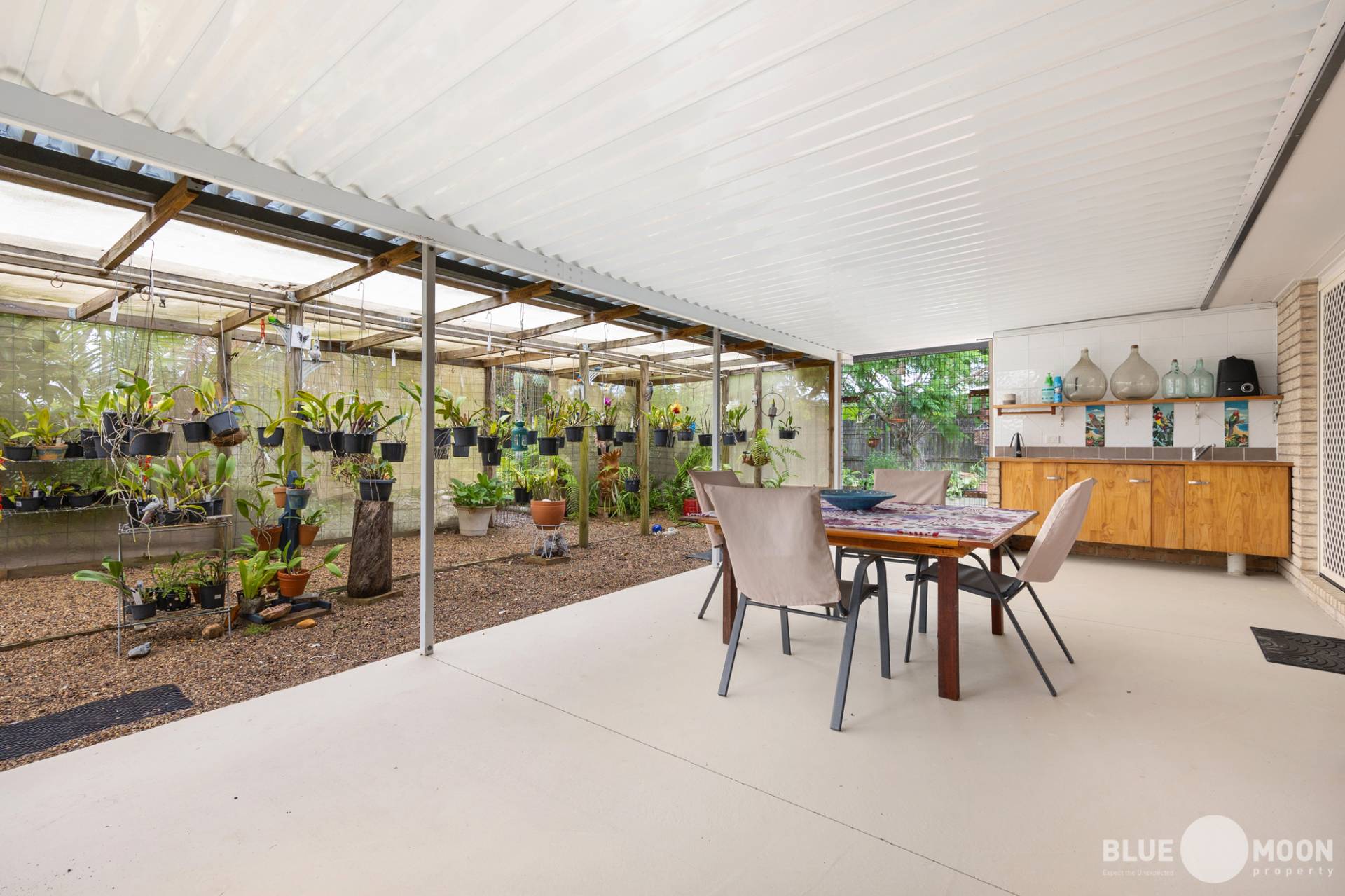 The second outdoor undercover area offers views of the established gardens, providing a tranquil oasis to sit and enjoy your morning coffee or a cold drink in the afternoon while enjoying the Burrum breeze.