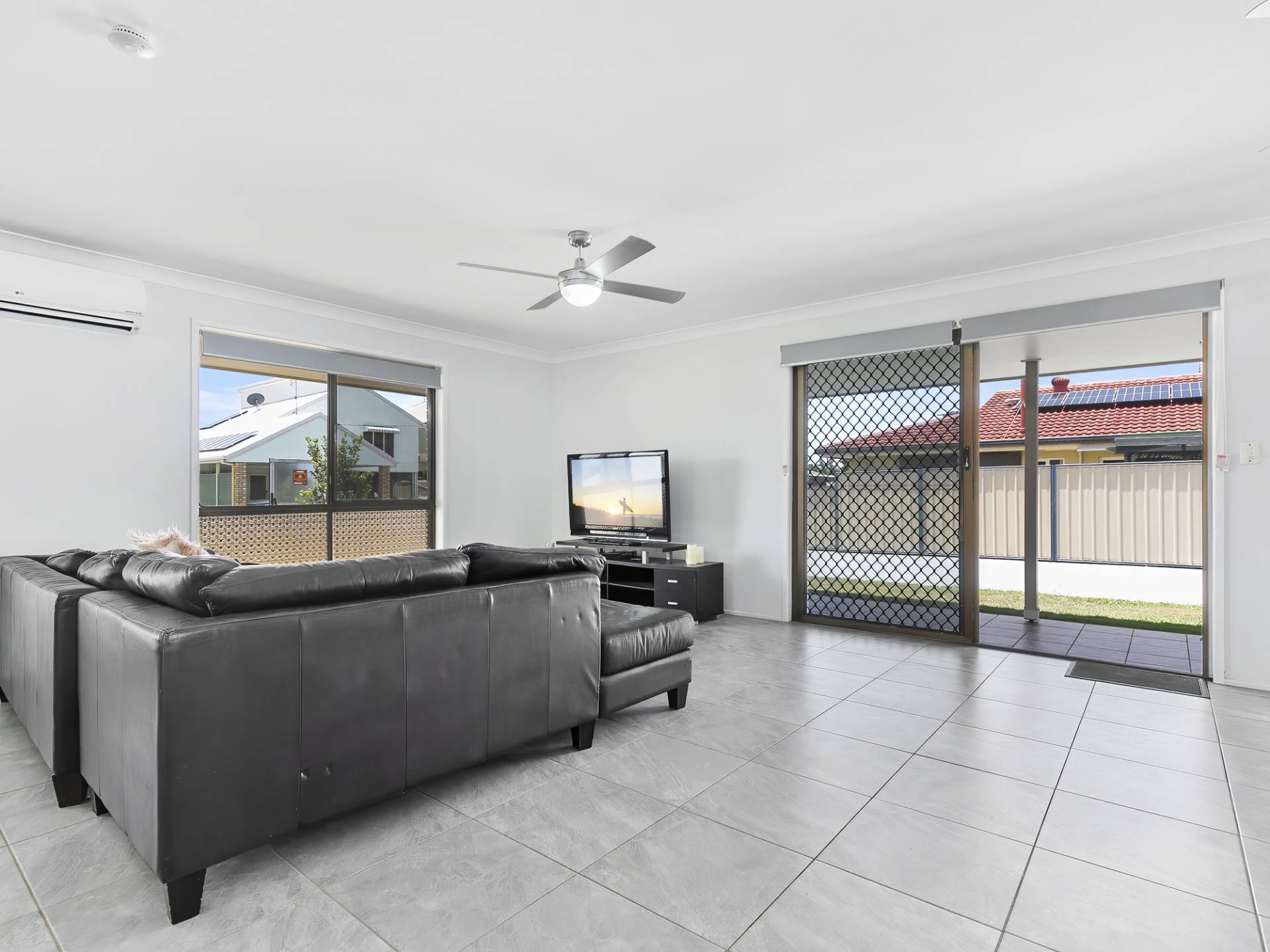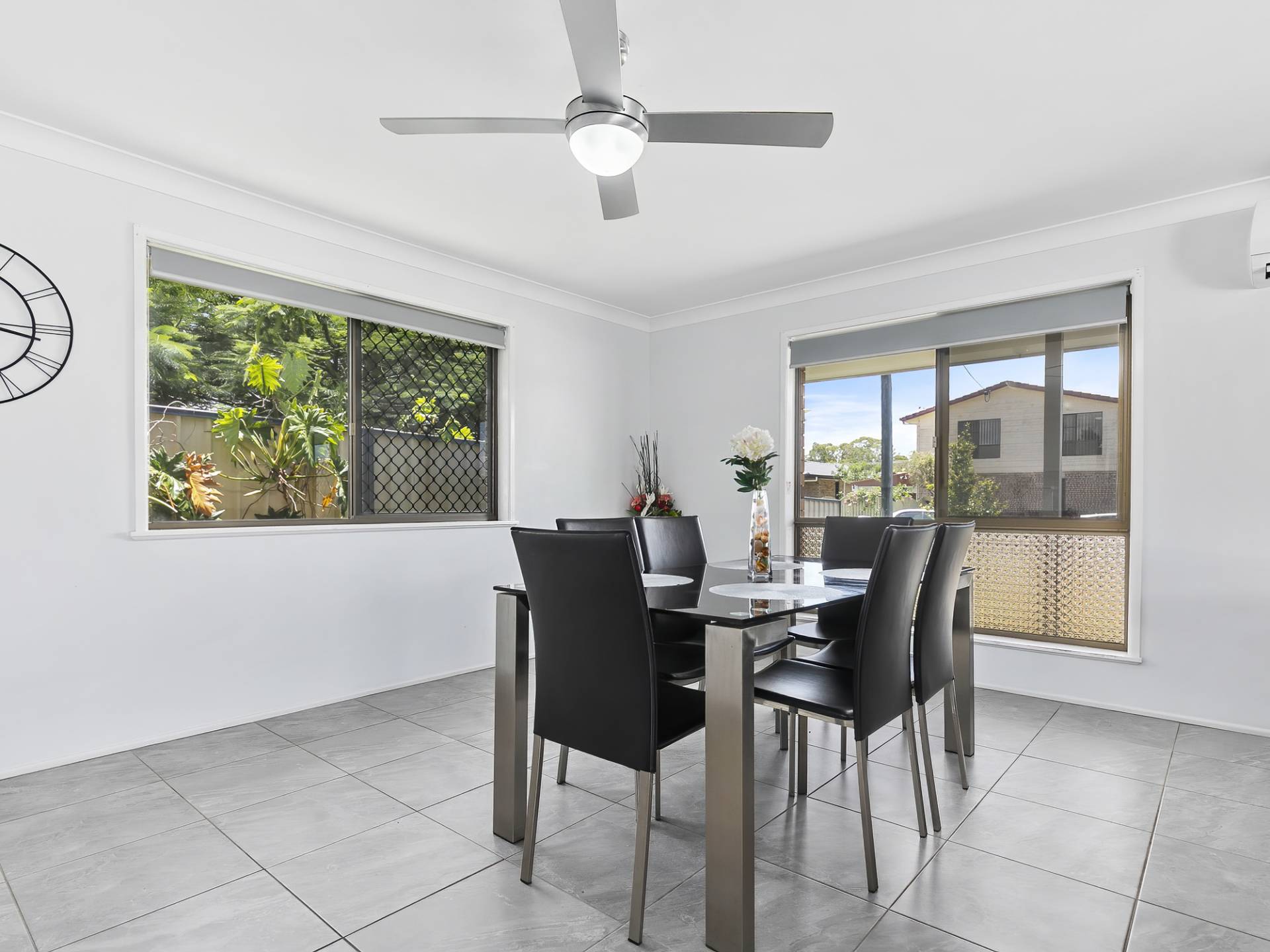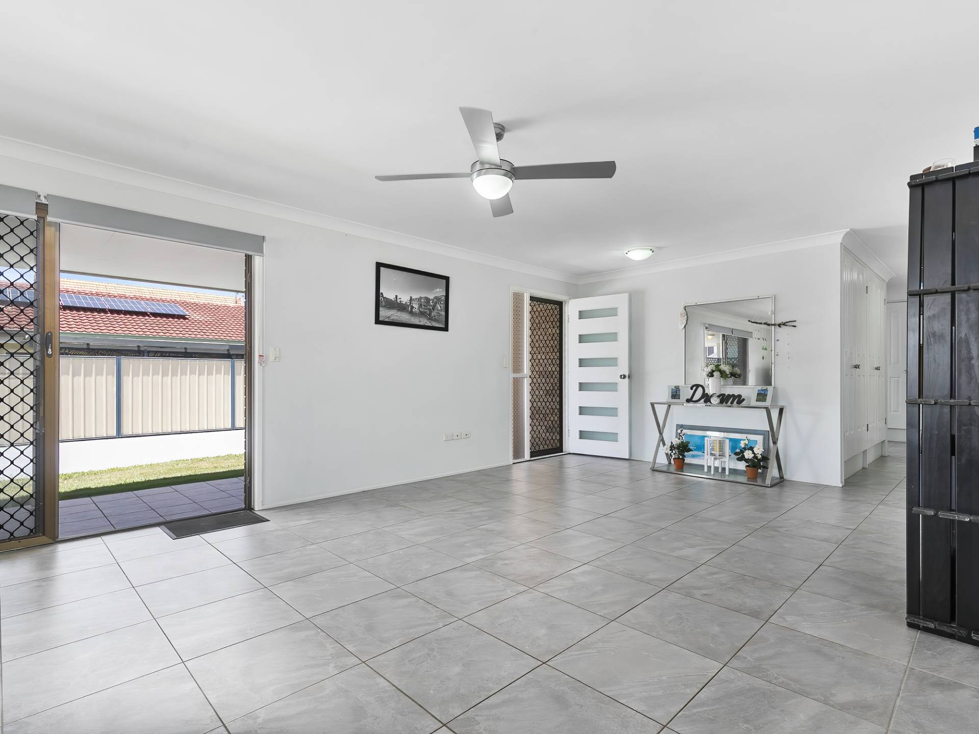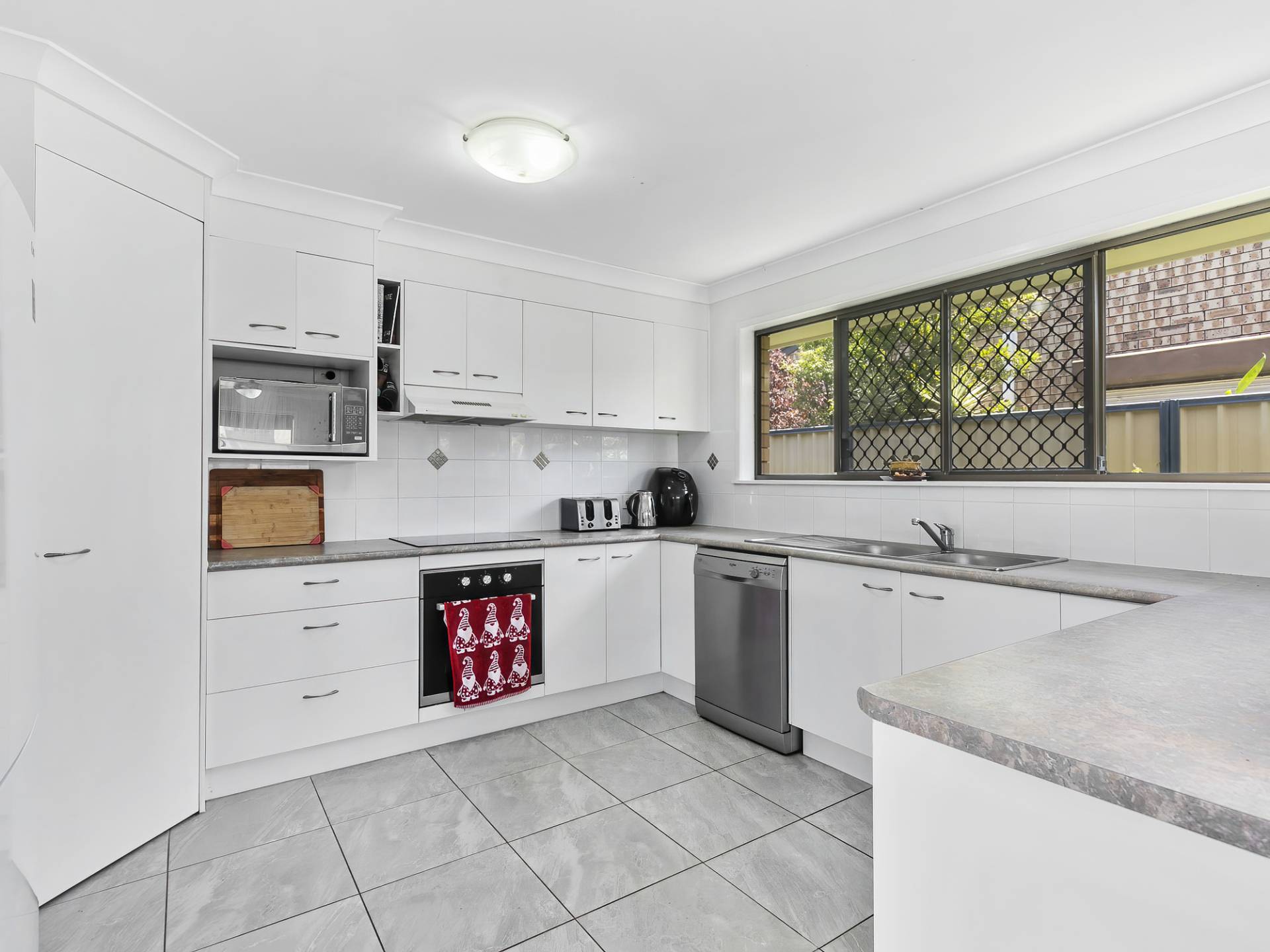 Enter the home into a large open plan living/dining areas that have ceiling fans, loads of windows that allow natural light in and the comfort of air-conditioning for those warm summer days. The kitchen is adjacent, has plenty of bench space, a corner pantry and ample cupboards and drawer storage.