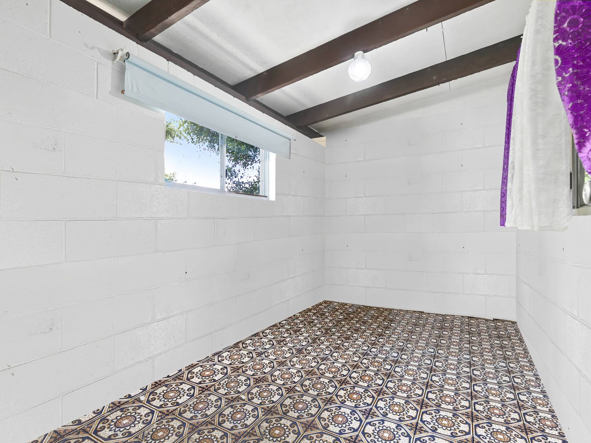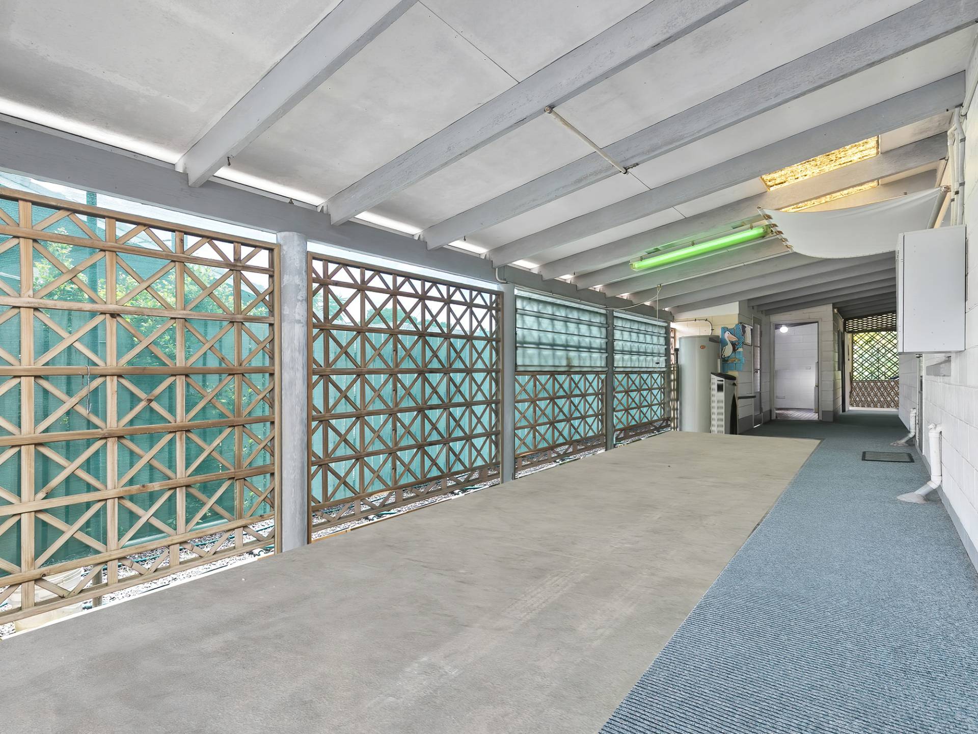 Through the carport you will find a large space undercover that would suit as entertaining or home gym space.  A lockable roller door in this area provides extra storage options.