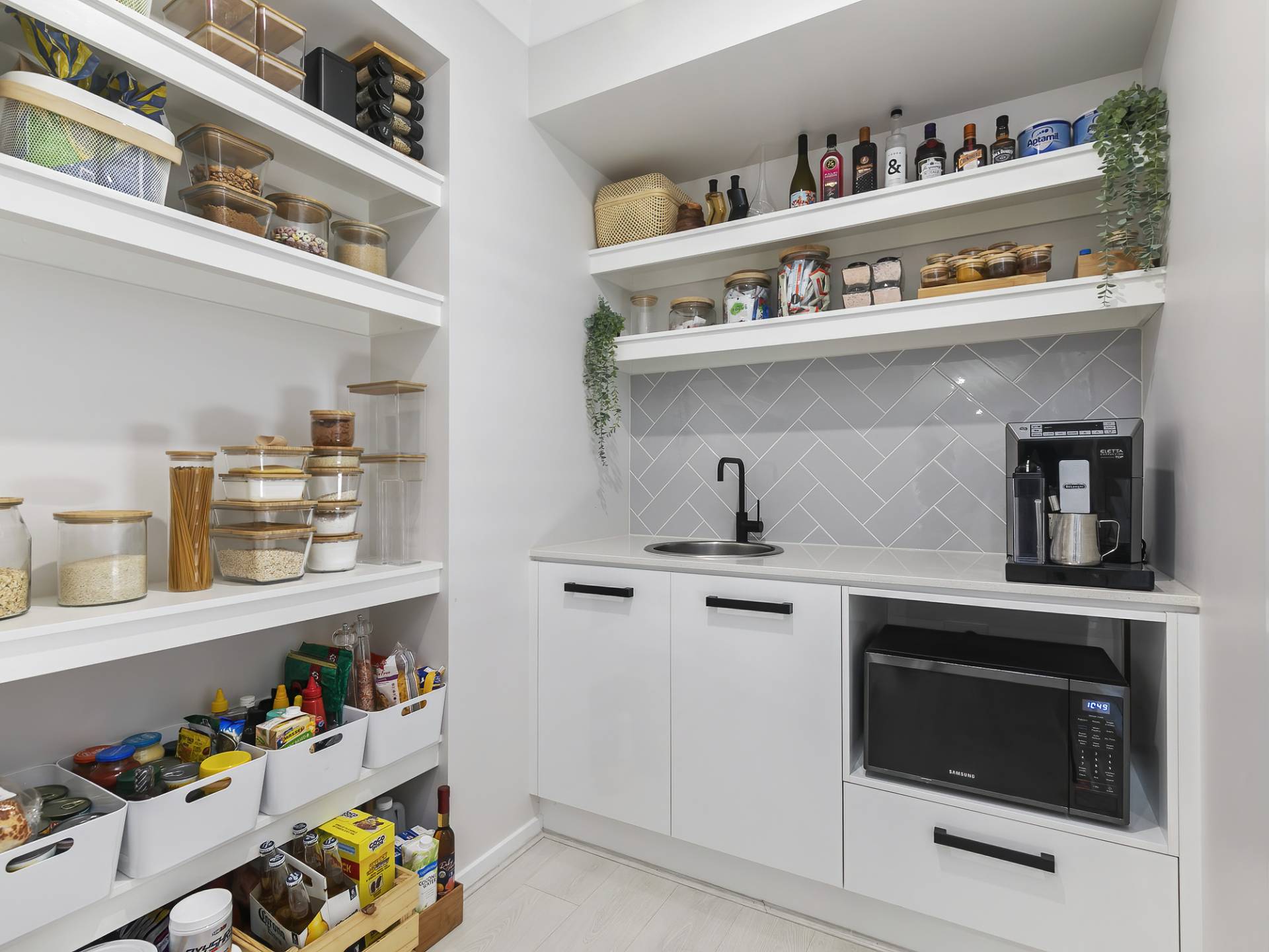 Spaciousness is felt throughout the home thanks to the high ceilings, 2340mm high doors and good storage. Ducted reverse cycle air conditioning and the further use of Caesarstone in the main bathroom, ensuite, and butler’s pantry adds to the elements of style.