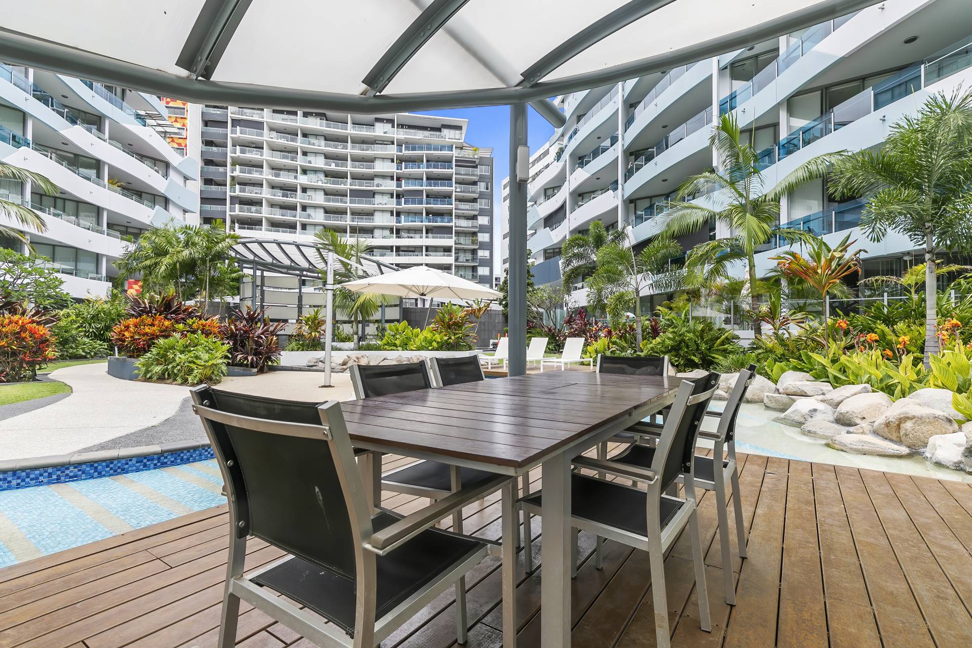 The open plan living / dining opens out onto an exclusive balcony perfectly located away from the lagoon pool area and perfectly private