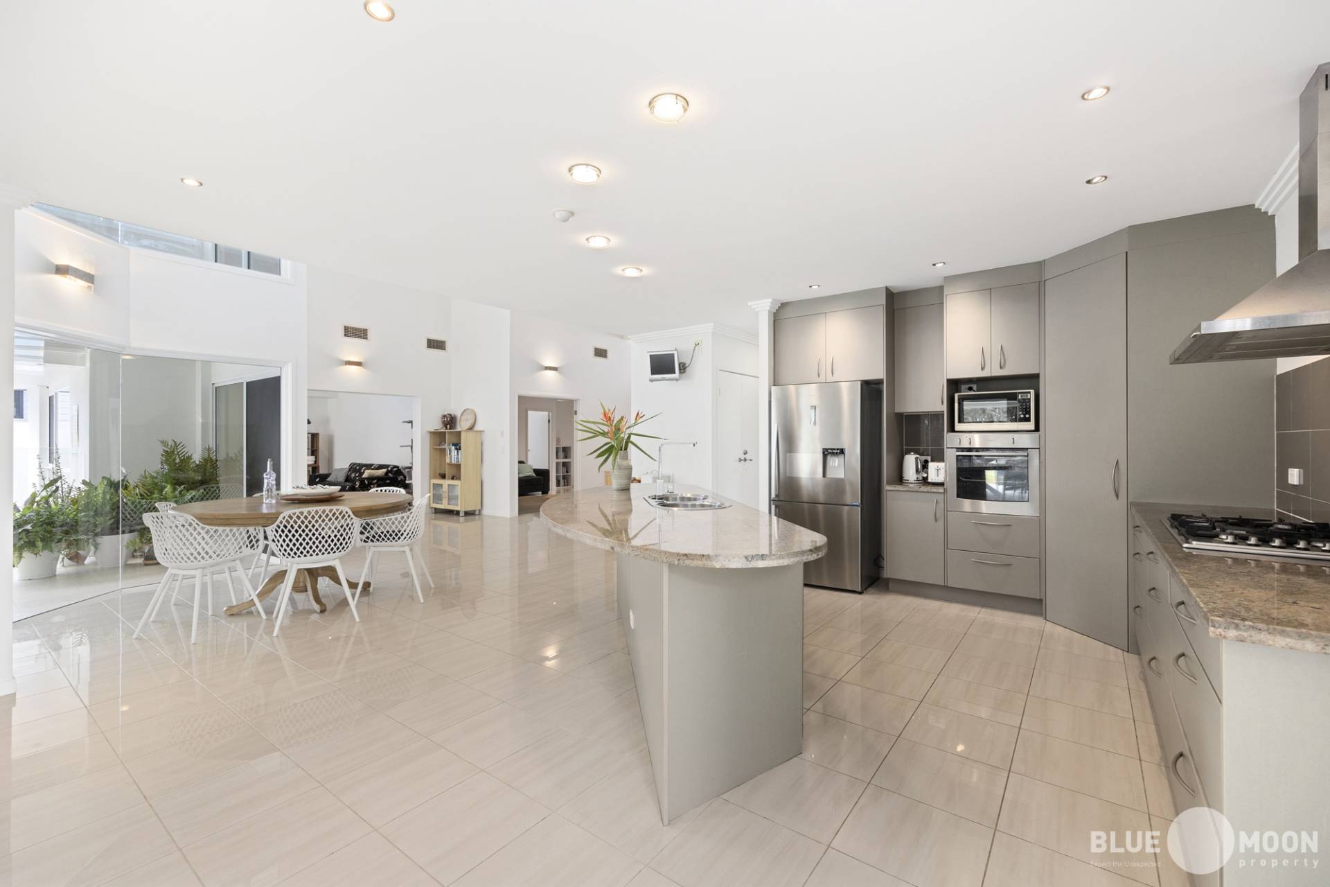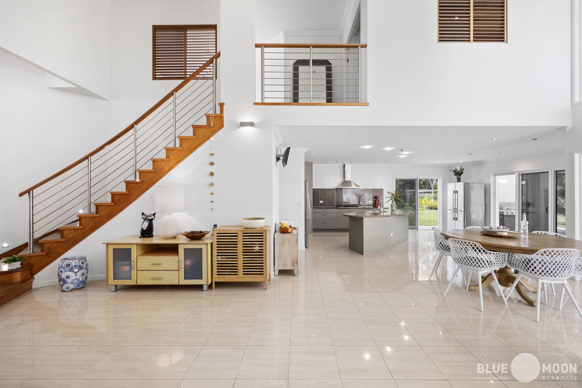 An abundance of strategically placed windows, high ceilings and an open plan design allows natural light and beautiful breezes to enter the property year round.