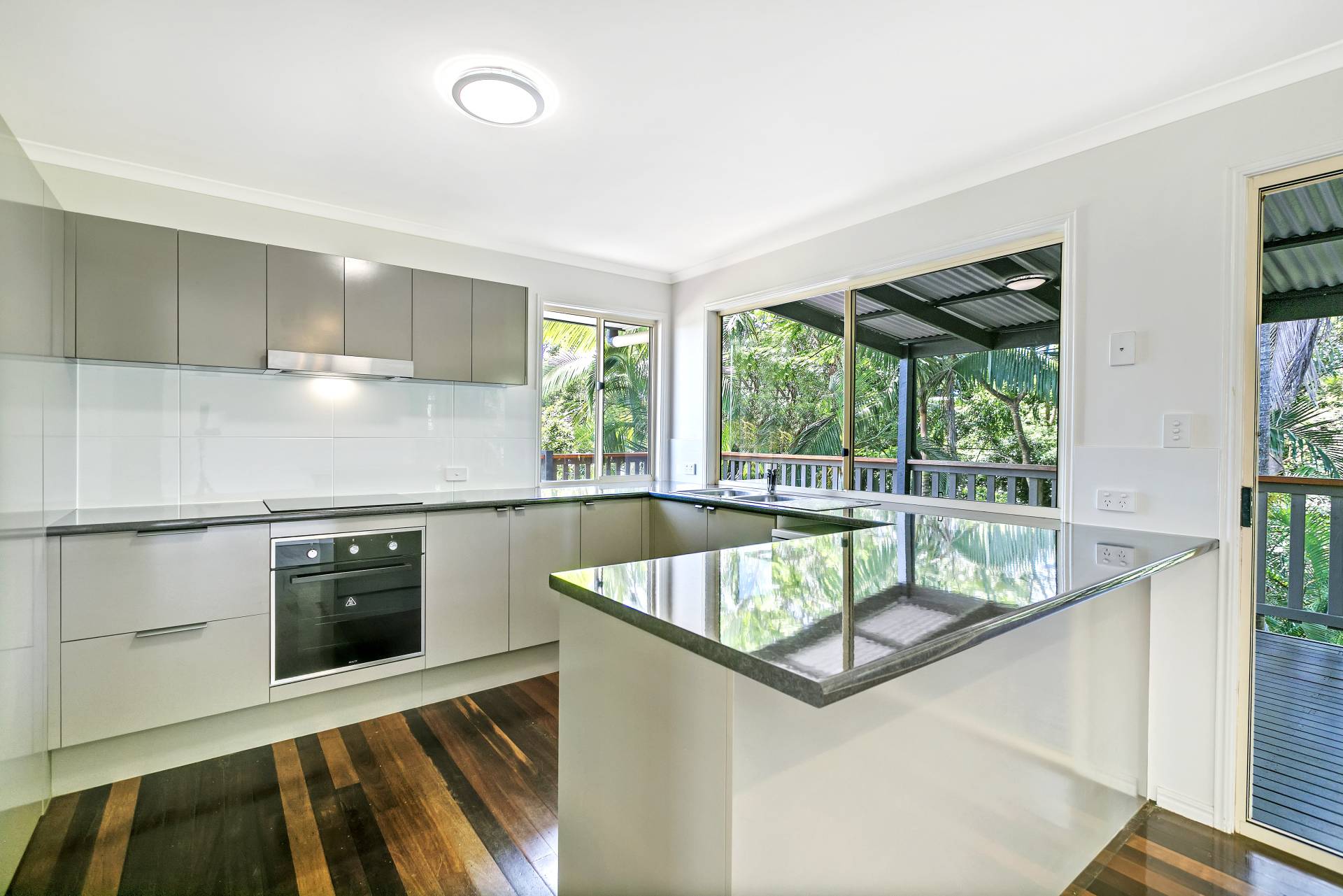 It's a contrast that simply works, further amplified by a rainforest backdrop and a substantial timber entertaining deck that wraps the home on its Northern and Eastern sides. Private and elevated to catch the breeze, this area is a very popular part of the home!