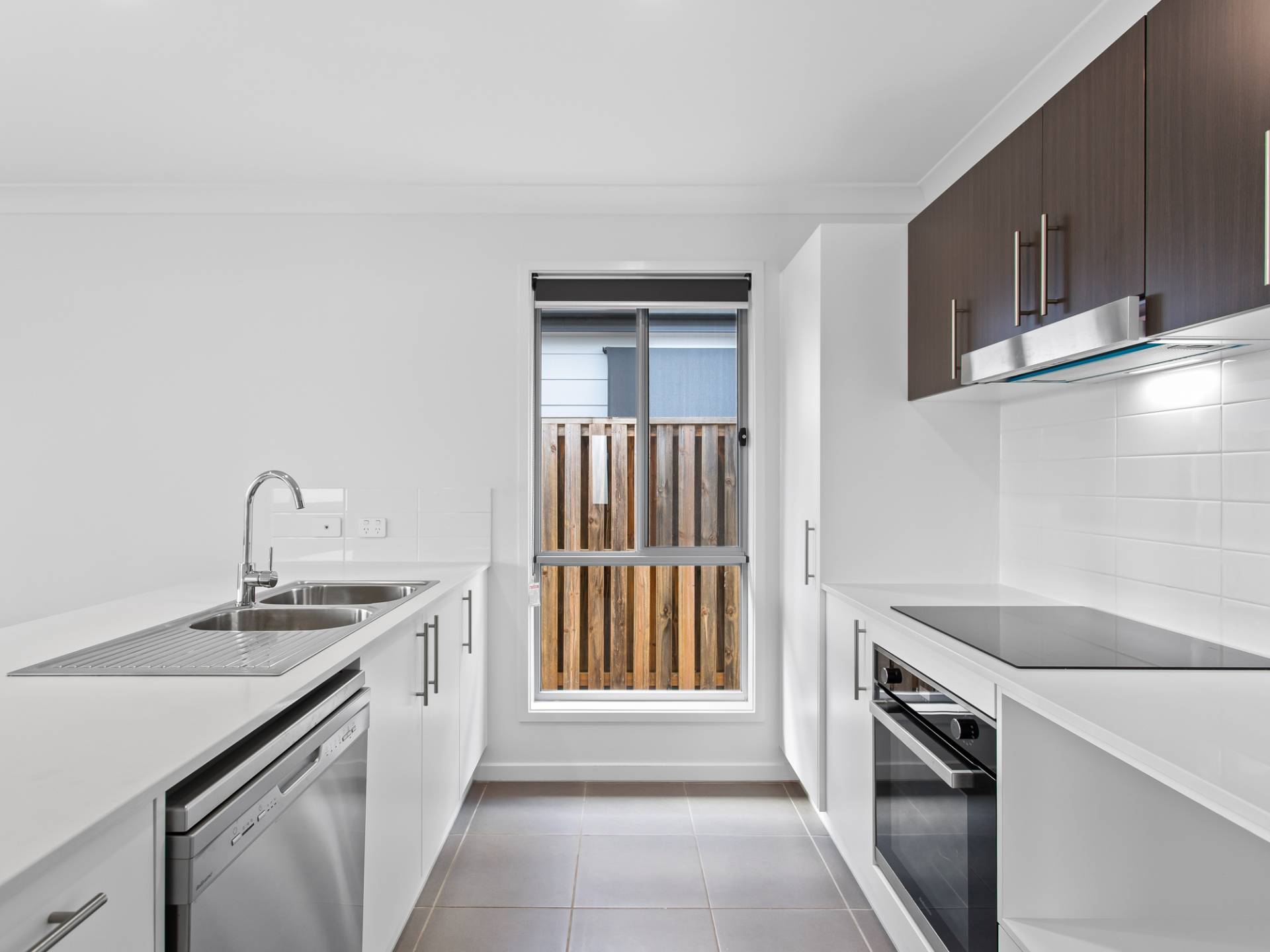 The open-plan living area is perfect for entertaining guests or spending time with family. The kitchen is equipped with modern appliances, including a electric cooktop and a dishwasher, and features a spacious island bench. The living area also opens up to a covered outdoor entertaining area, providing the perfect space for alfresco dining or relaxation.
