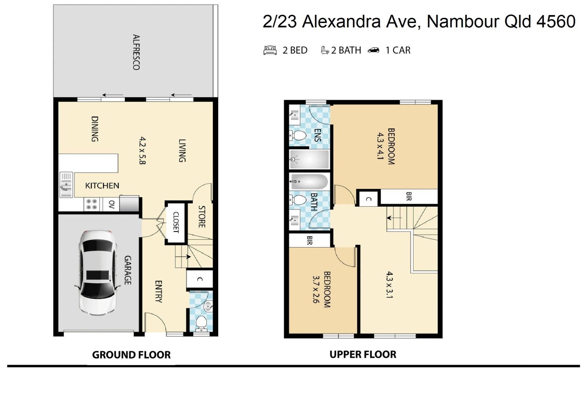 Two-level townhouse located at 2/23 Alexandra Ave in Nambour, Queensland.