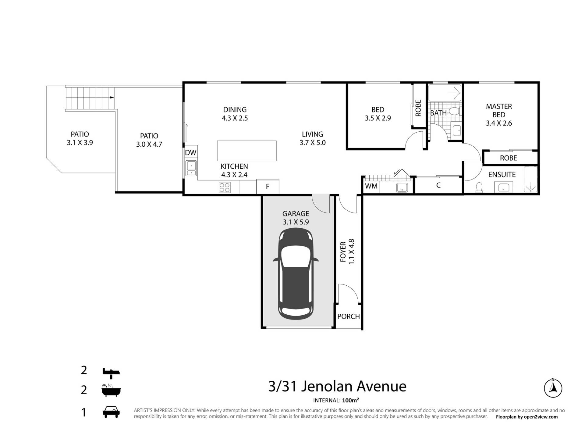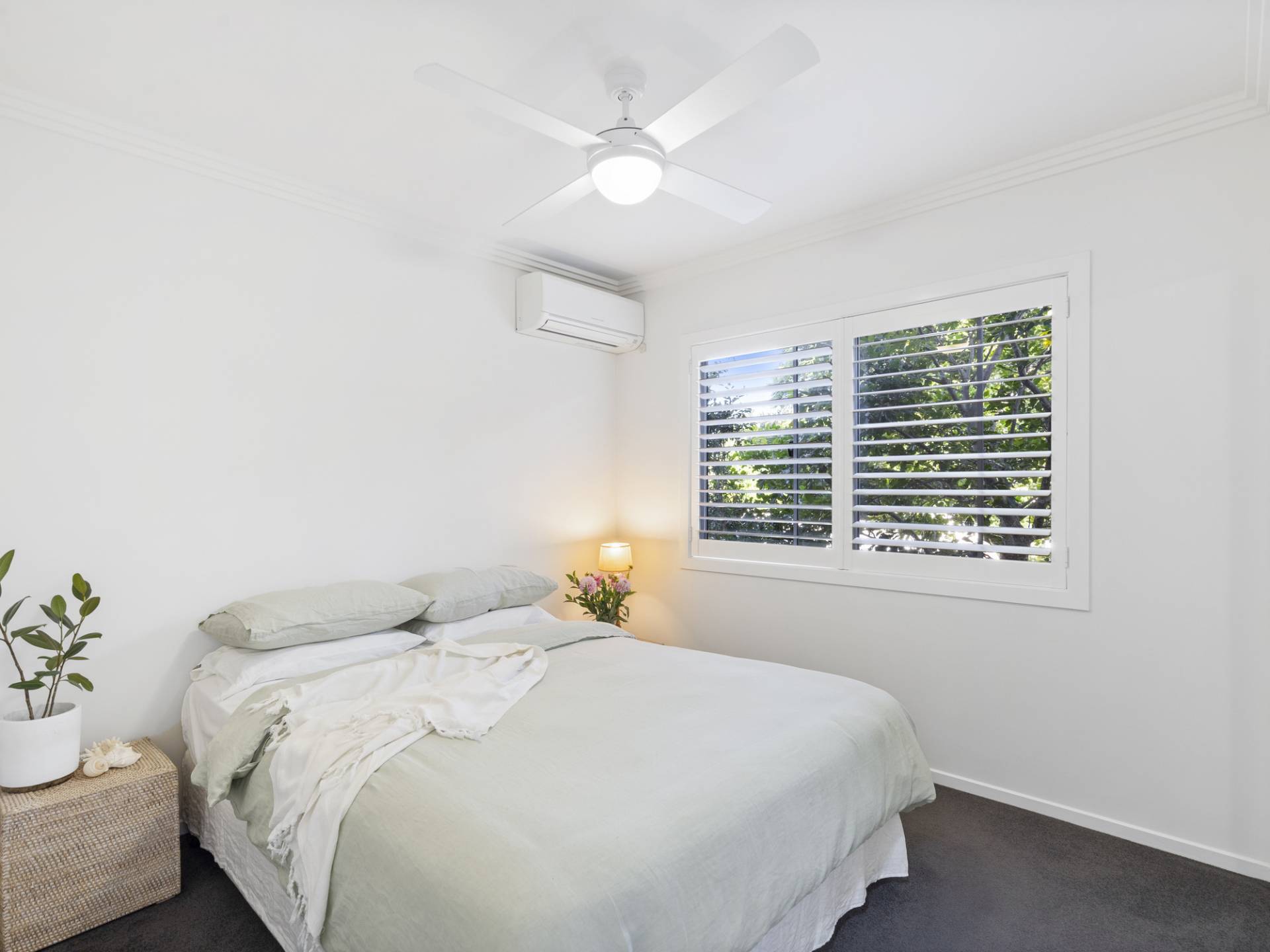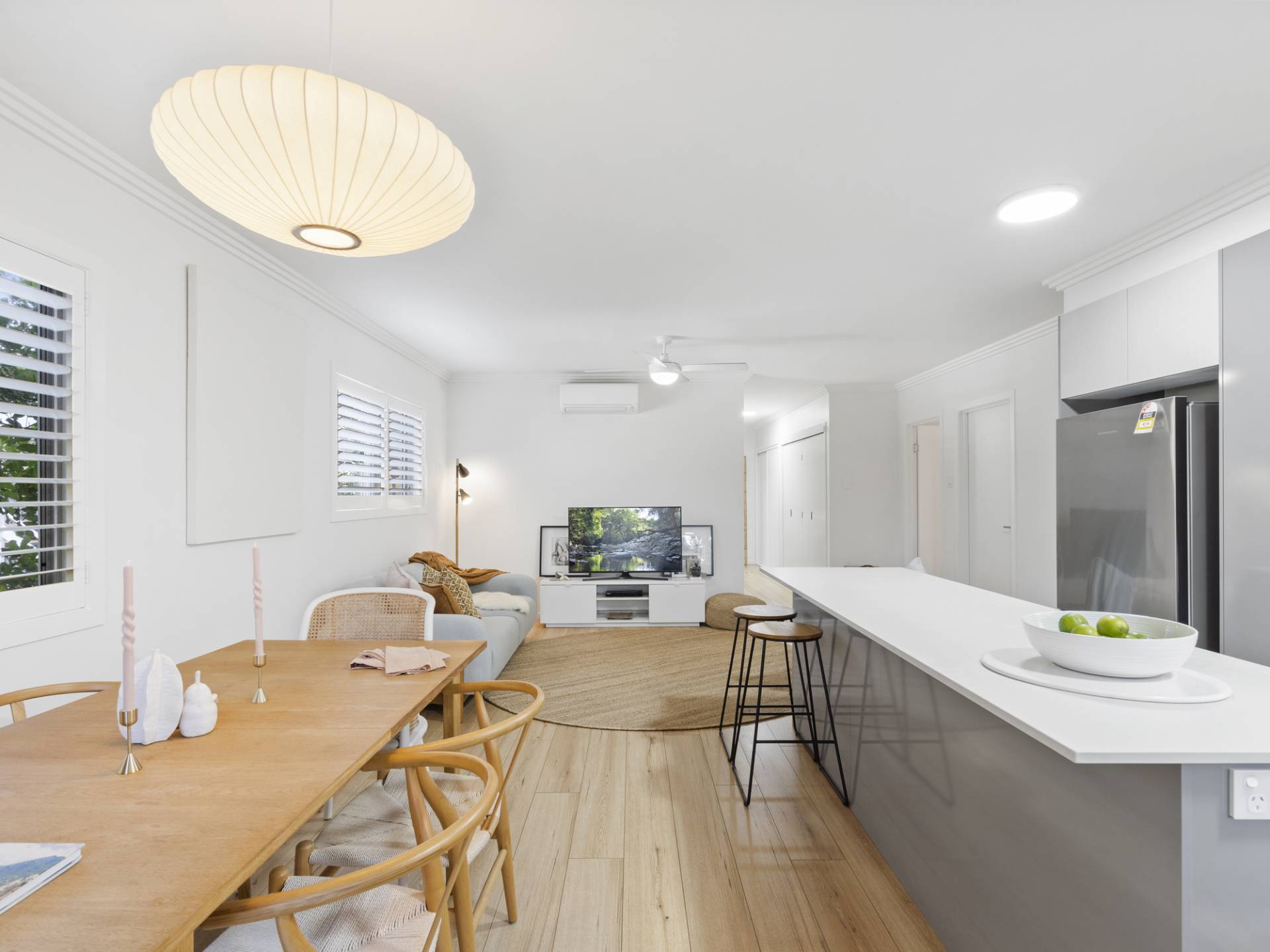 The open plan includes the modern kitchen boasting an island bench plus quality European appliances and the living/dining extends out to a private east facing and very private patio which overlooks a neat and leafy courtyard. The recently installed plantation shutters in both bedrooms and living/dining allow the abundant natural light to be adjusted to suit, as well as adding a charming character to the home. The lock-up, secure garage allows convenient internal access. Air conditioned with fans throughout for year-round comfort, this is one of those “don’t miss this” opportunities.