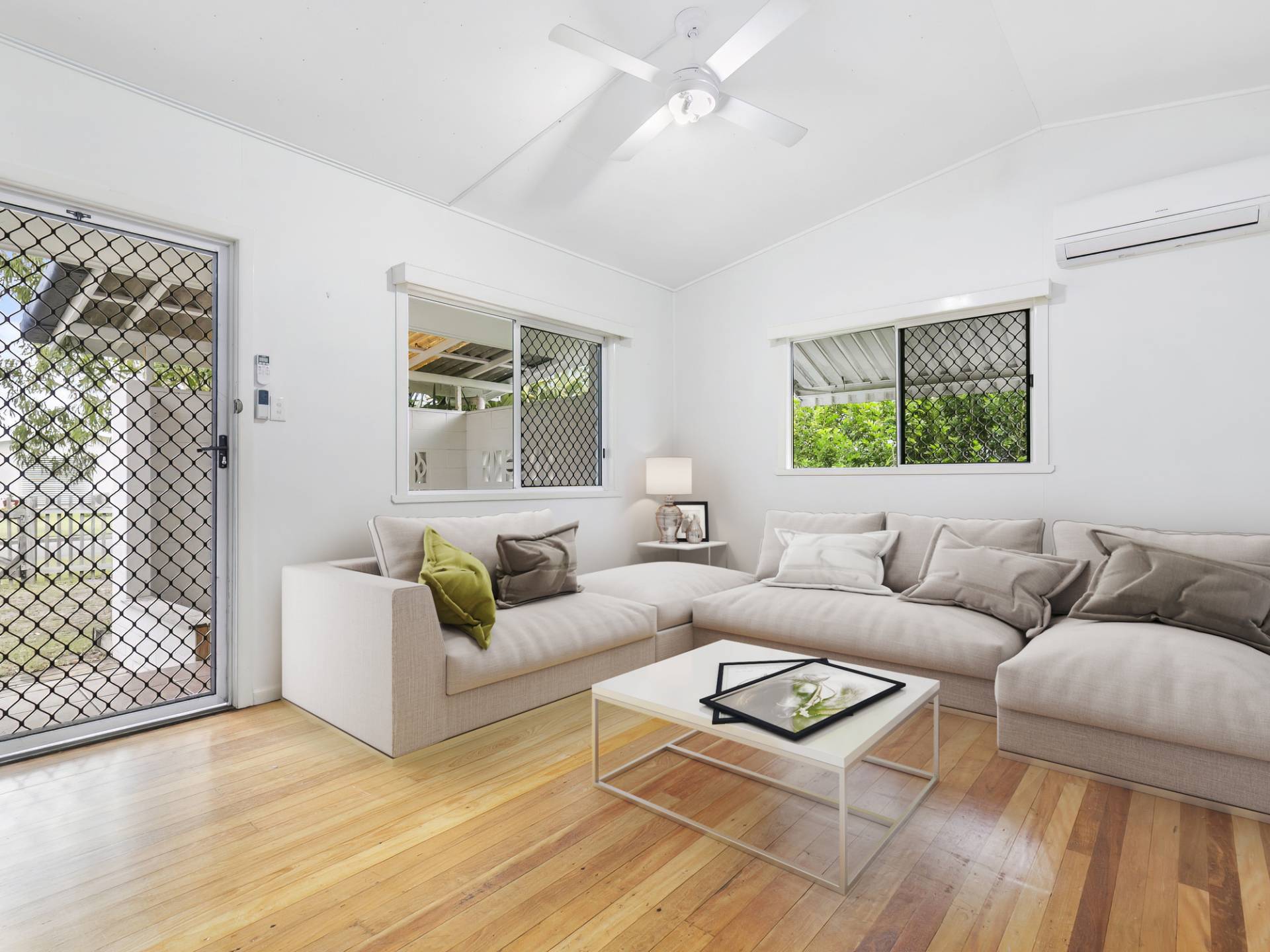 Three spacious bedrooms all with ceiling fans (two rooms with built-in robes)