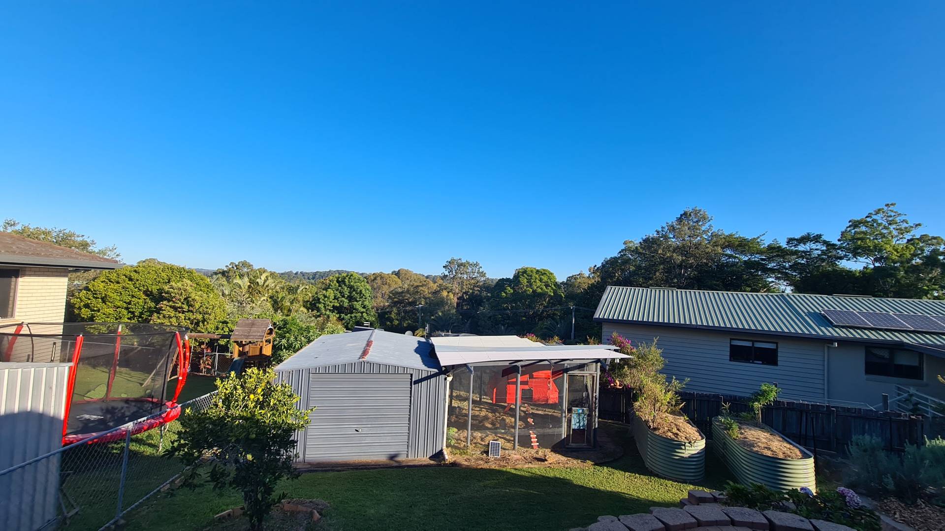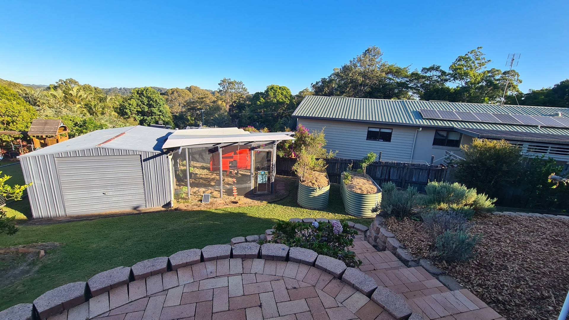 Sweeping views from the back patio and manicured gardens including raised veggie gardens and a fish pond out front. There is also a huge chicken coop and large shed.