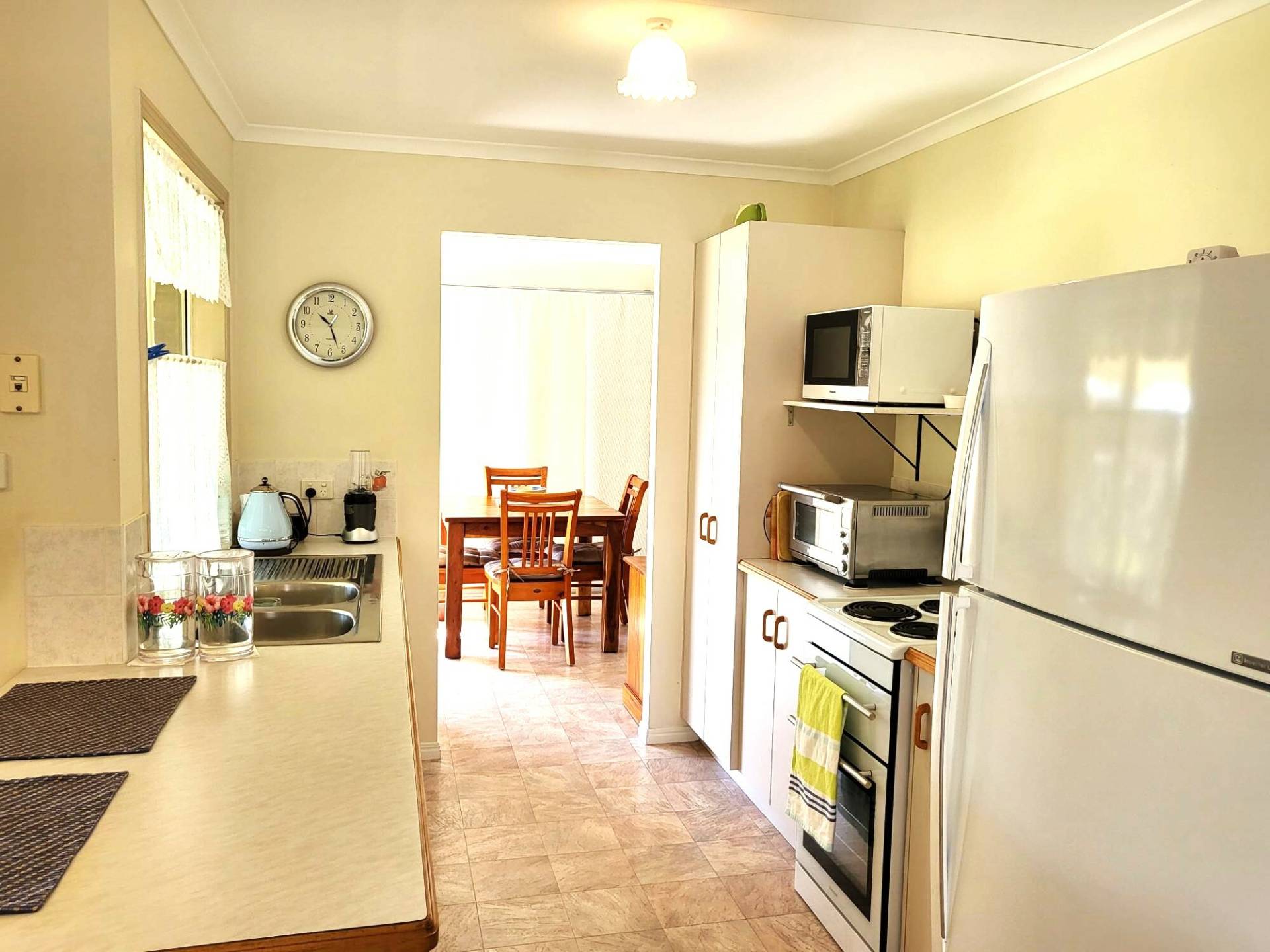 The practical kitchen includes all the conveniences with pantry, freestanding electric stove and oven and plenty of bench & cupboard space.
