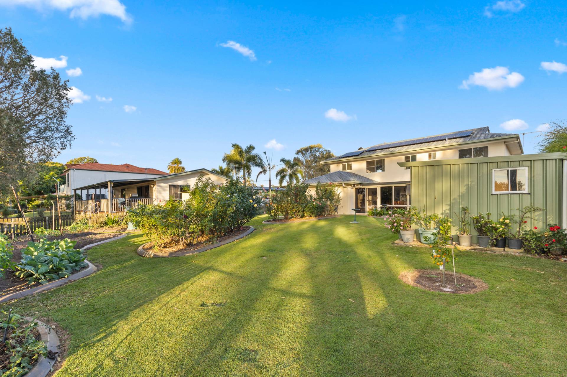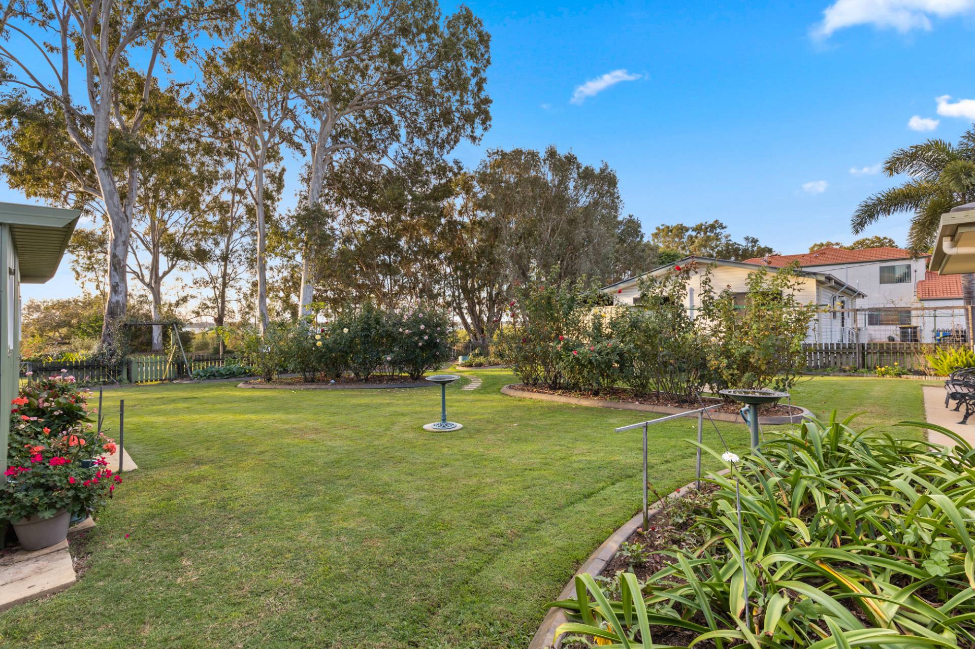 The back yard of the property simply needs to be seen to be believed.  With an abundance of rose gardens and colourful plantings, room for a pool and magnificent water views, this truly is the quintessential coastal dream home.
