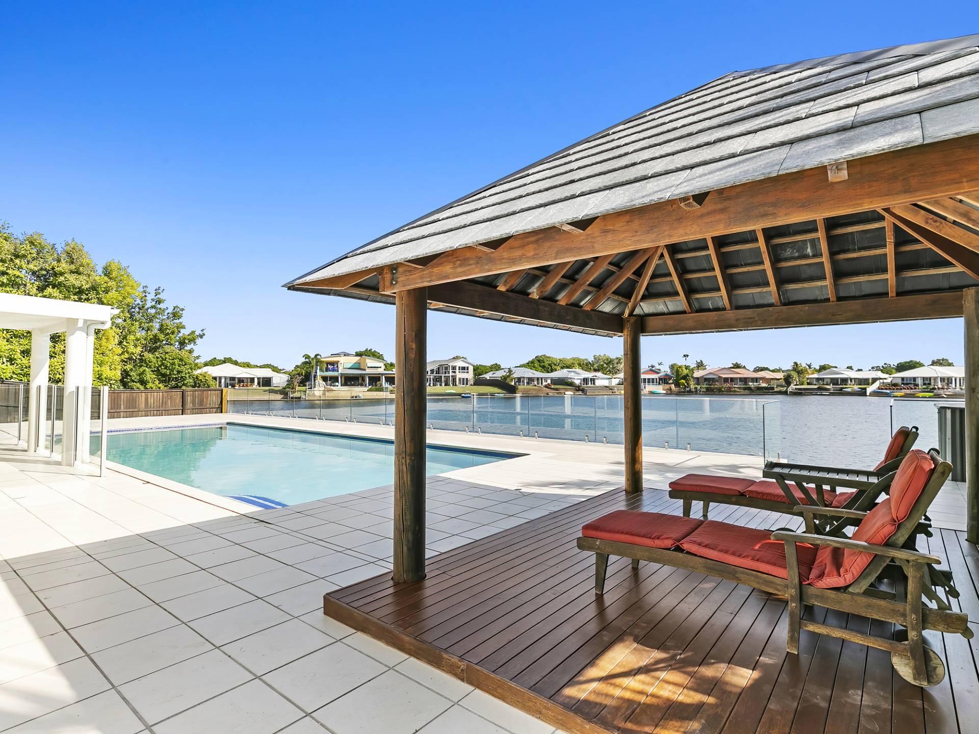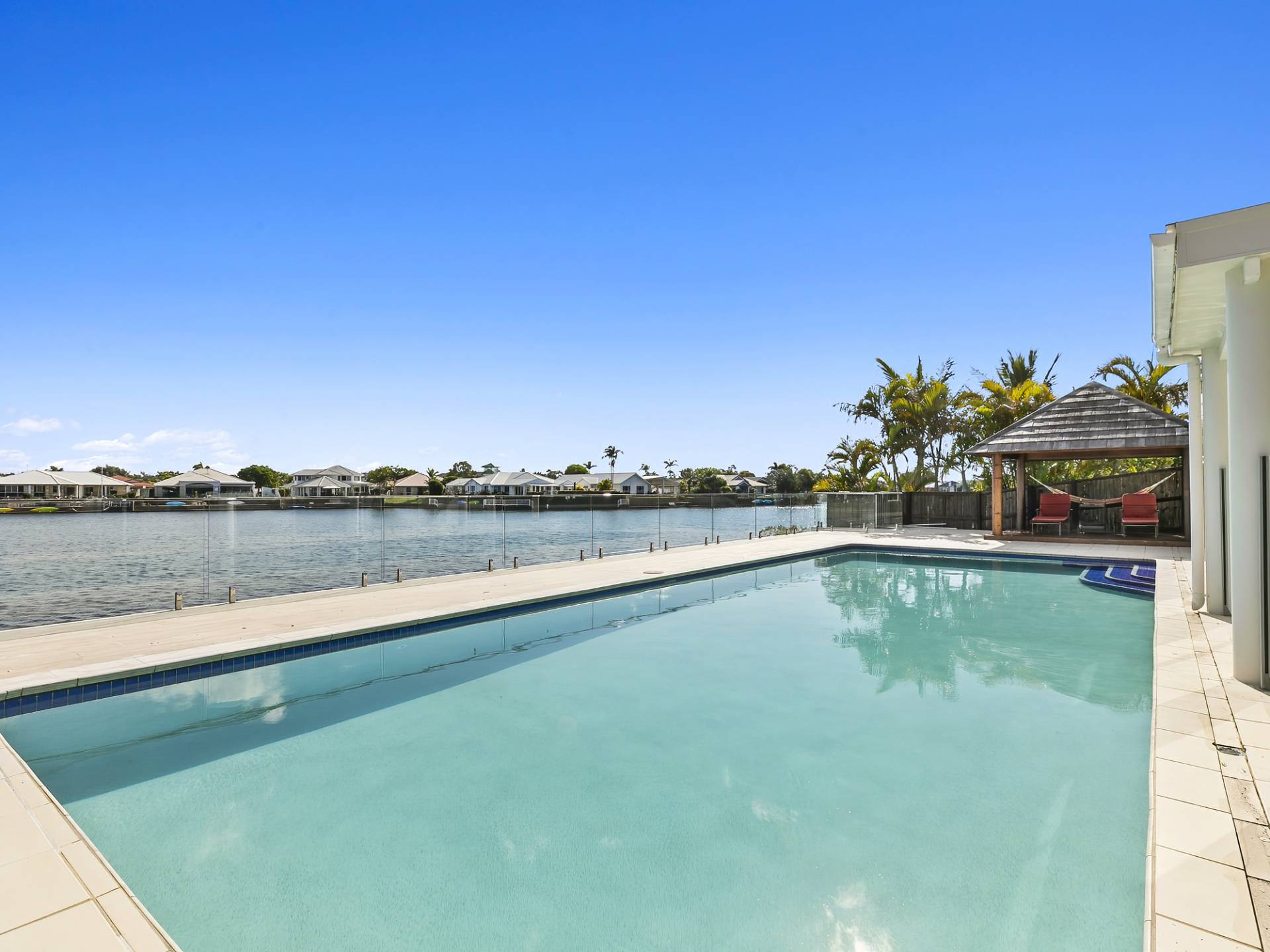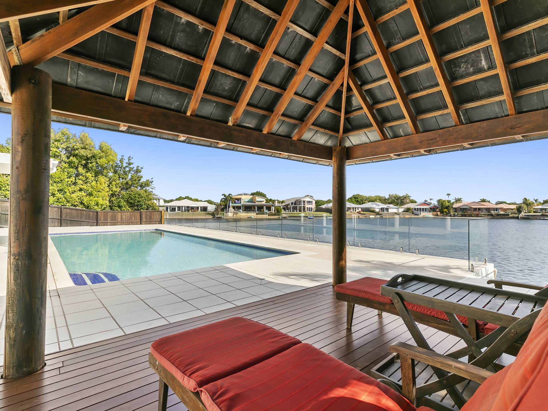 The large rear undercover area leads to the enormous inground swimming pool with frameless glass fencing that enhances the water views of the lake.