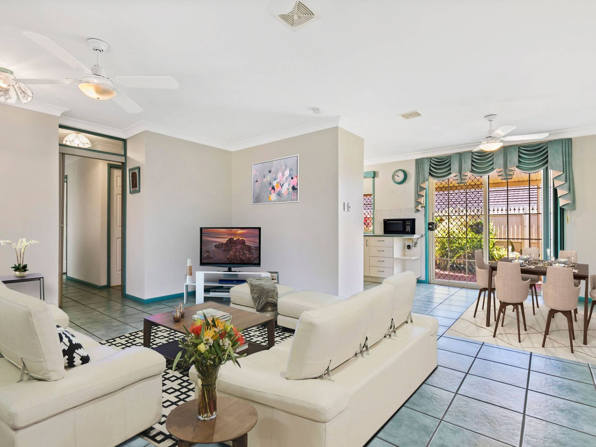 • Air conditioned master and living, ceiling fans throughout