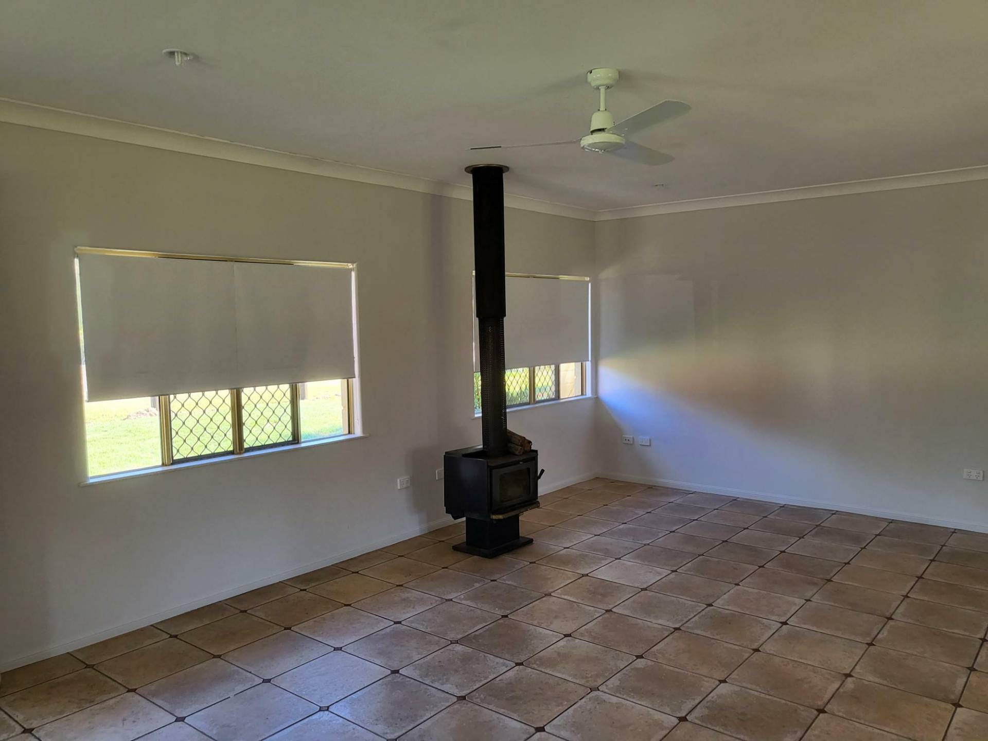This three bedroom, one bathroom home features a wood heater, air conditioning and ceiling fans throughout.
