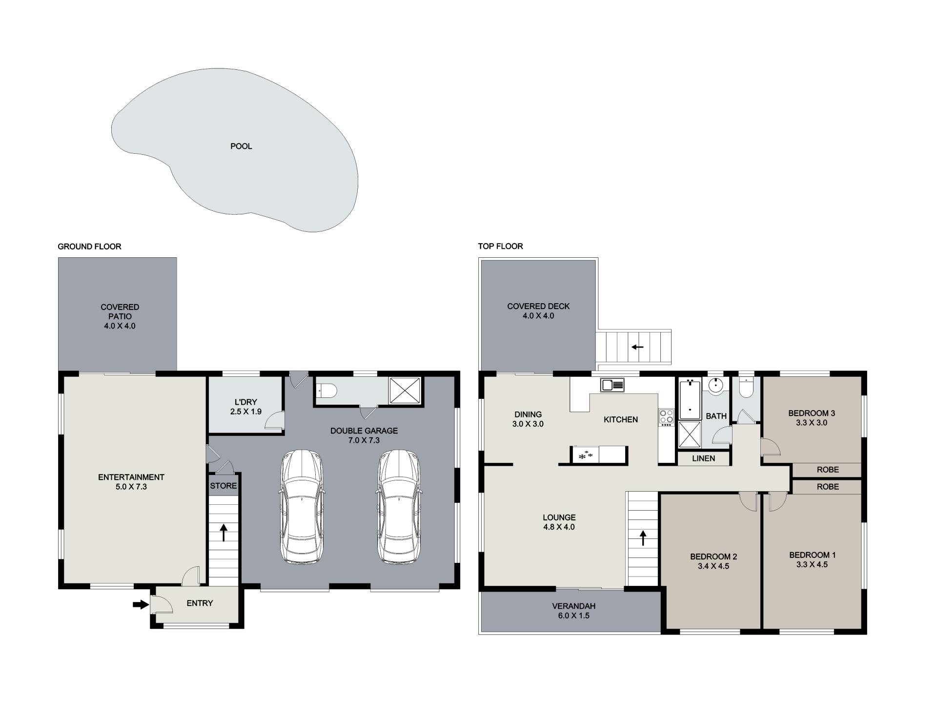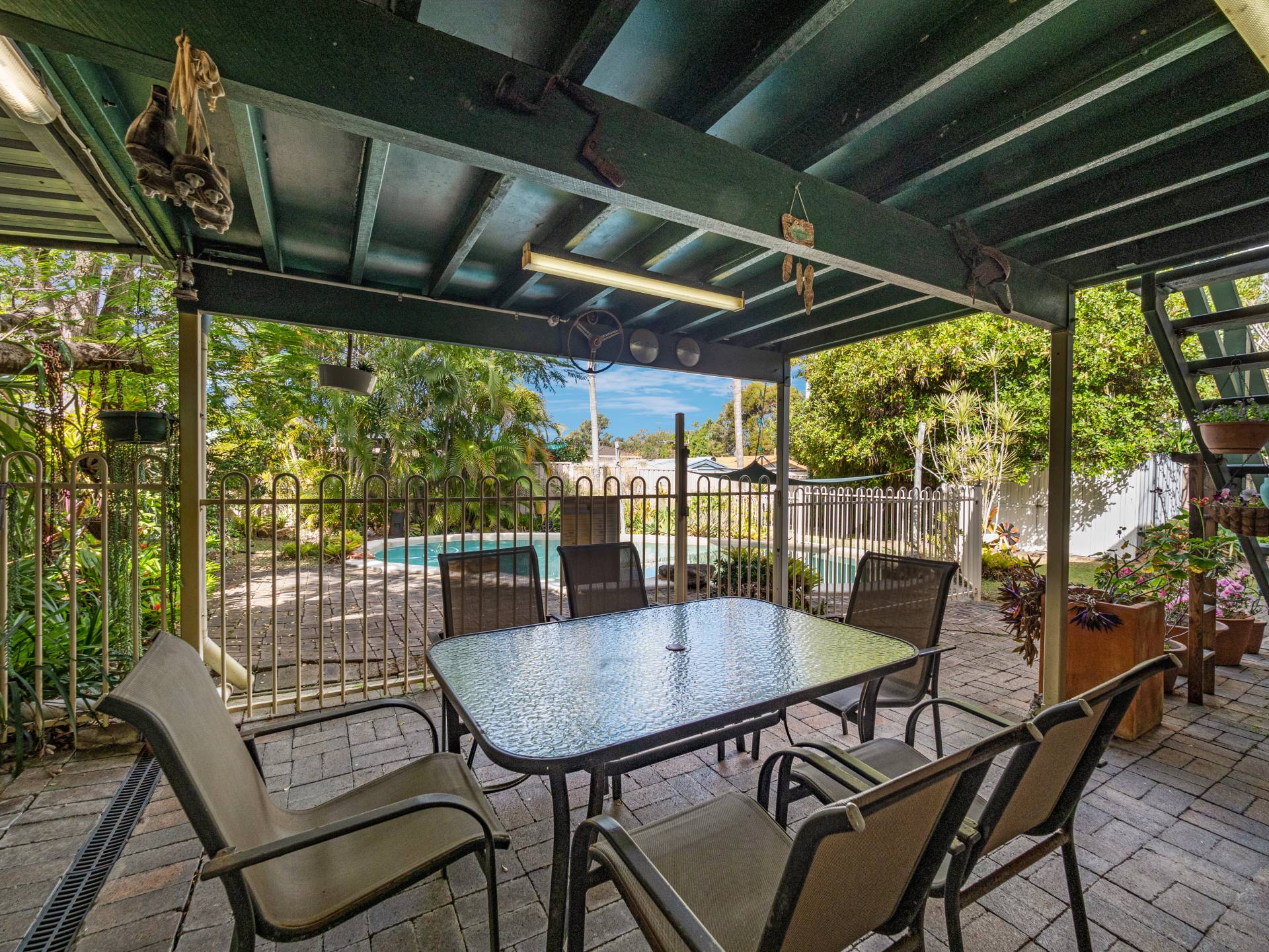 Upstairs you'll find a well-appointed family-size kitchen alongside open plan living space with your choice of the front patio or the covered rear deck overlooking the pool.