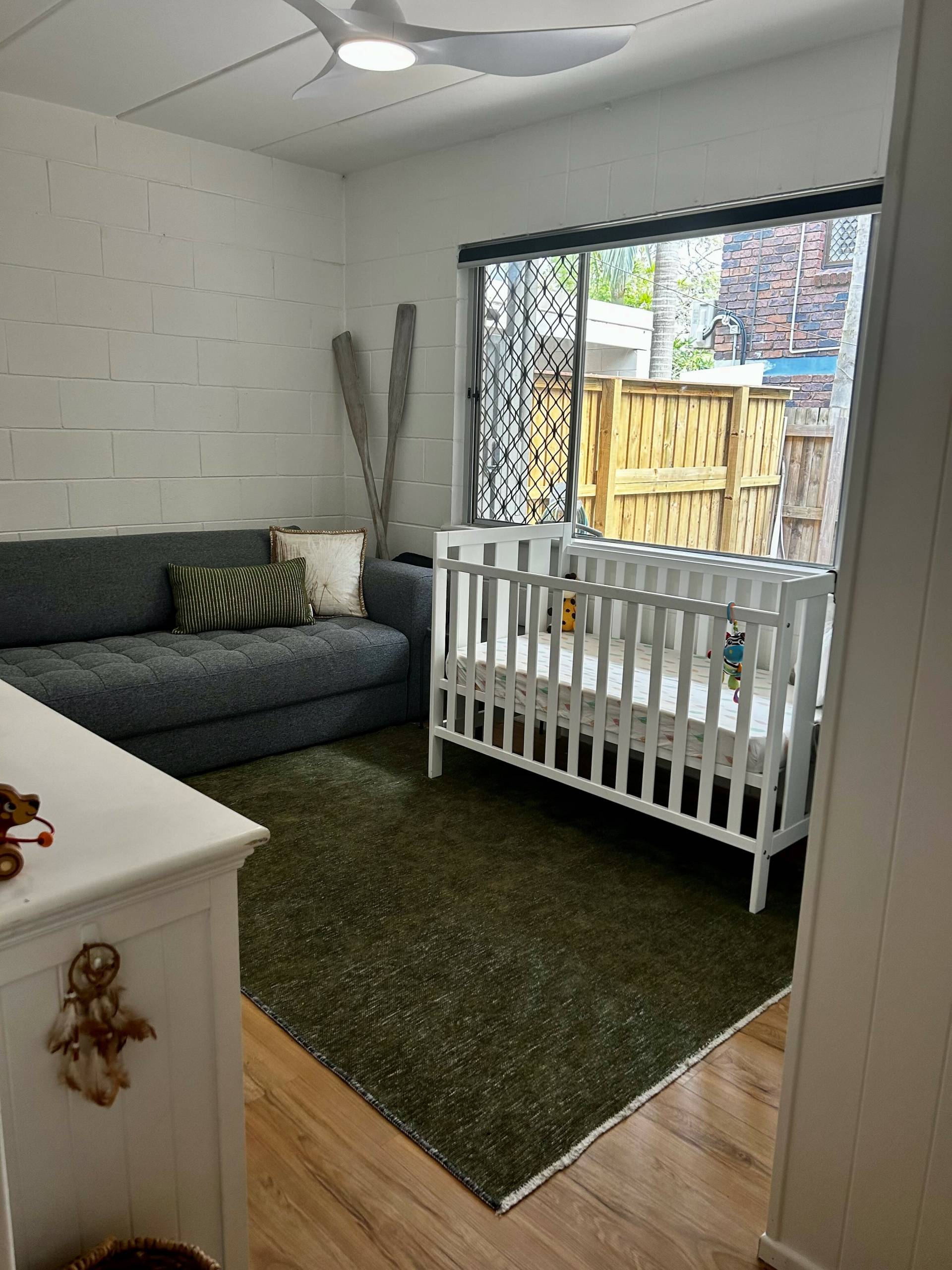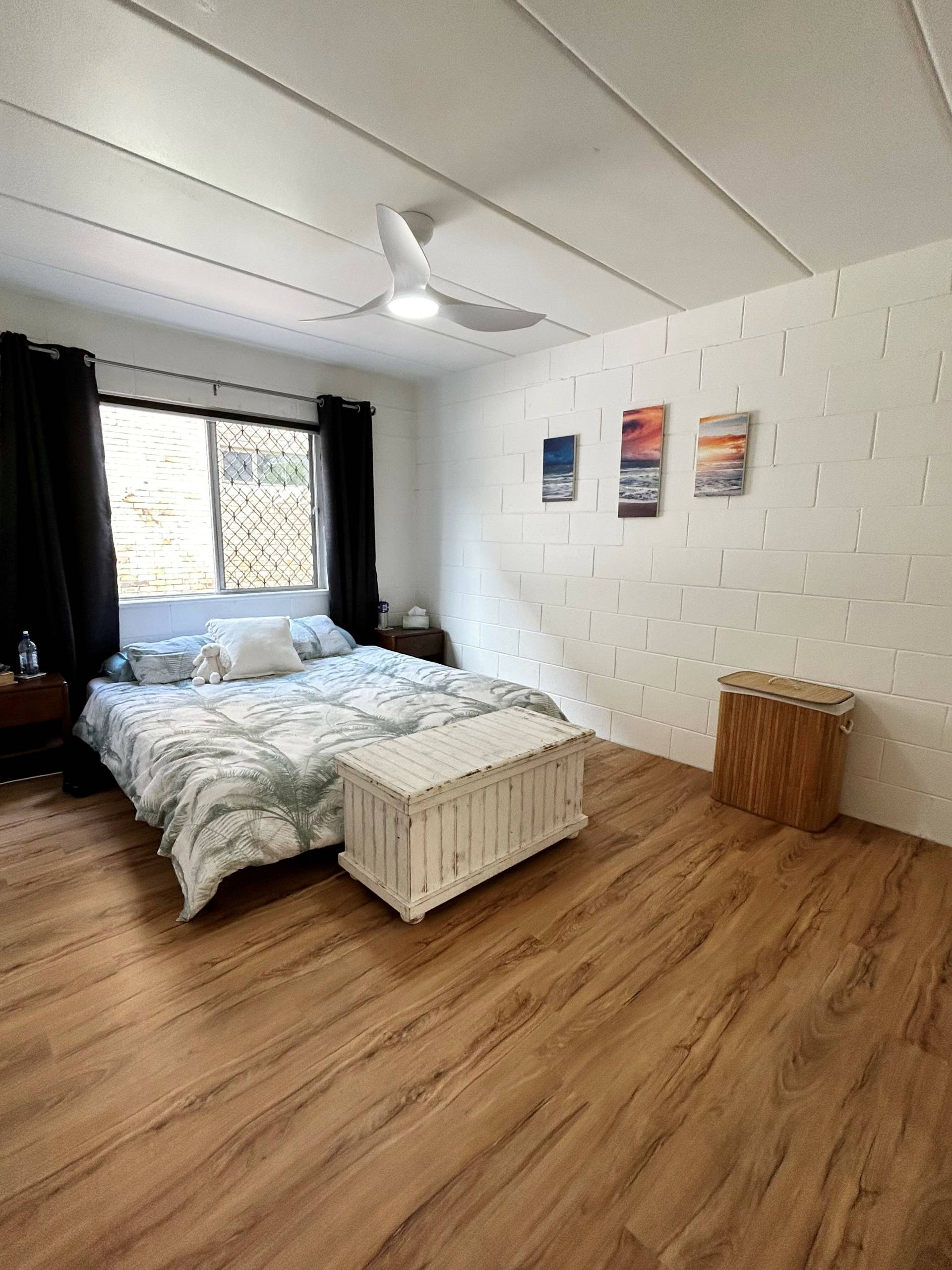 2 Bright bedrooms with robes and ceiling fans, oversize main bedroom w King size bed frame