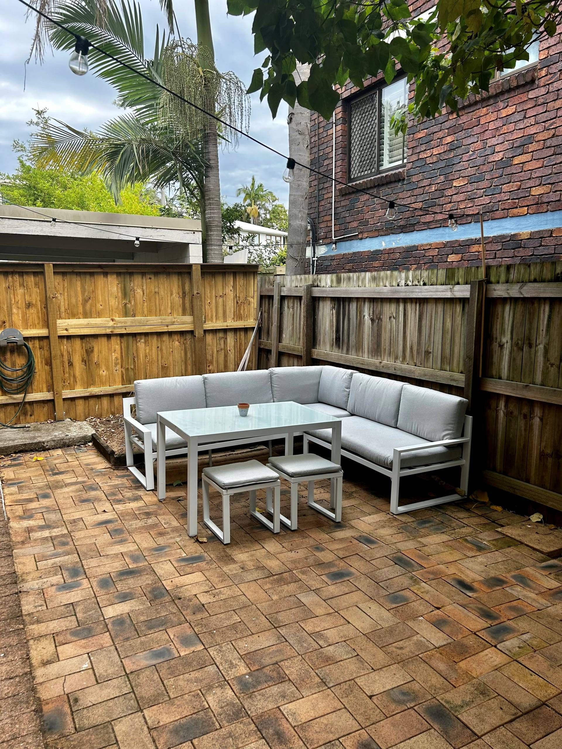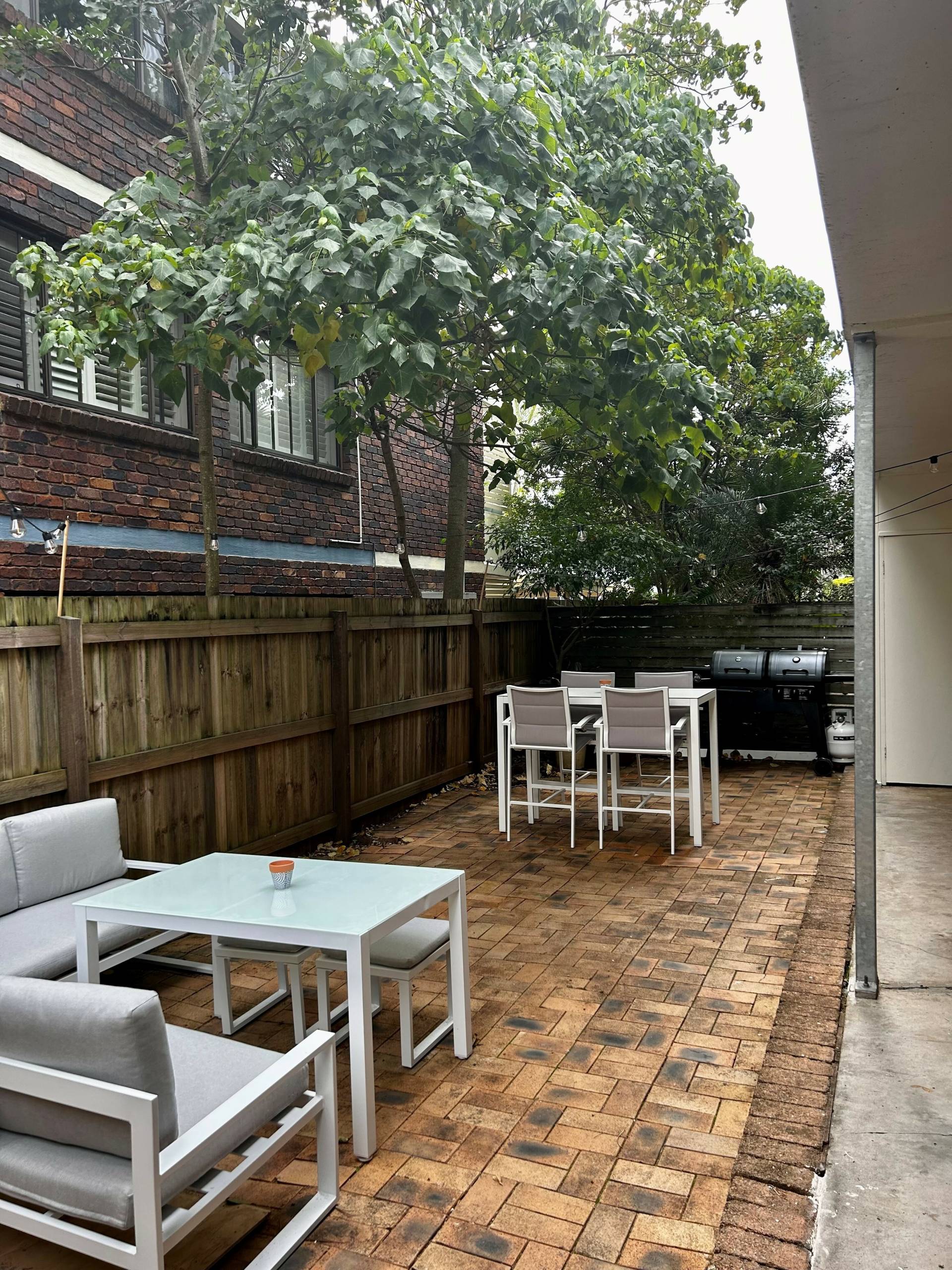 Large paved fully fenced courtyard, a rear find in unit living