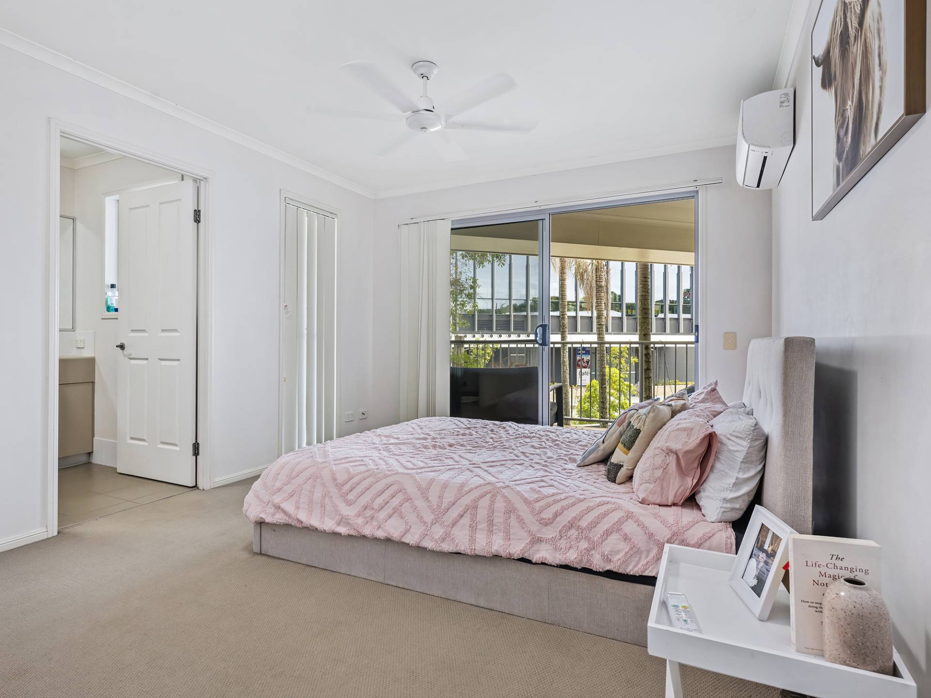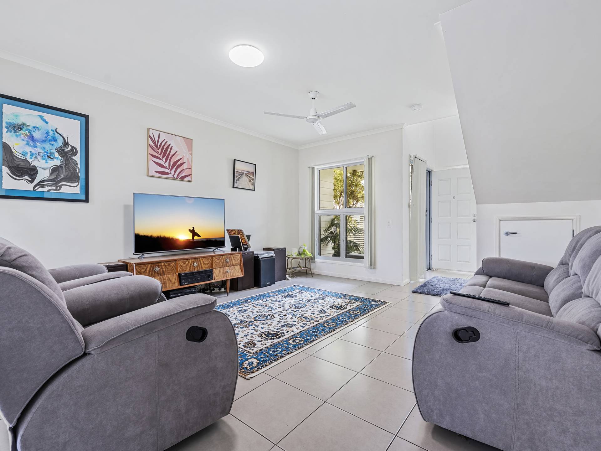 The upper level consists of three spacious bedrooms, master with ensuite, walk in robe, balcony and air-conditioning. The remaining bedrooms feature built-in robes and ceiling fans with easy access to the main bathroom.