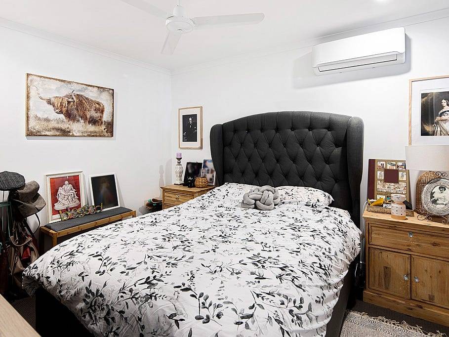 * Master Bedroom with a small walk in robe & air conditioning and ceiling fan
