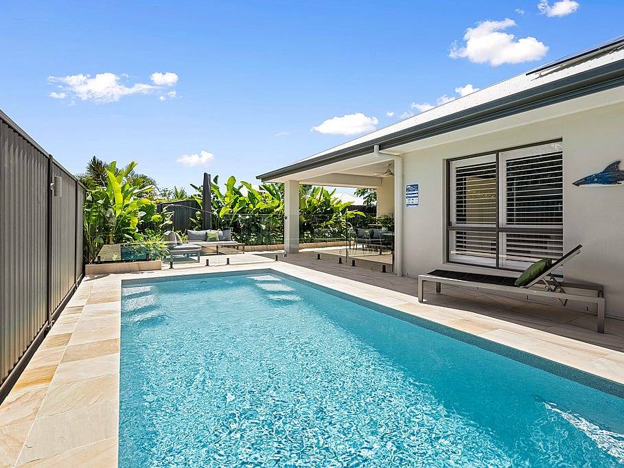 - Alfresco outdoor entertaining area with ceiling fans, overlooking inground pool
