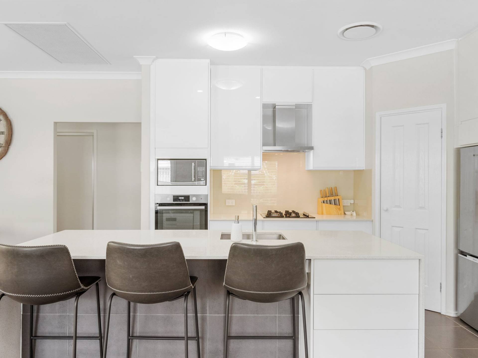 To the back of the home contains a large airy and bright kitchen with stone bench tops and an island bench for a breakfast bar. The kitchen has gas cooking and electric appliances including a dishwasher for your convenience. The open plan, kitchen, dining and main lounge open up to the large undercover entertainment area overlooking the gorgeous sparkling saltwater inground pool and seating area with plenty of established green gardens. The handpicked tiles really make this area feel open and spacious as well. This is the perfect place for entertaining friends and family.