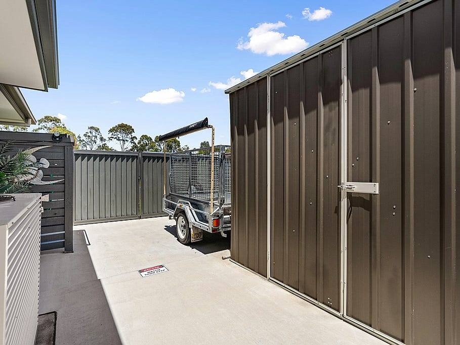 Low maintenance, fully fenced yard with 3 storage sheds and side access for box trailer. The Master bedroom also opens up to this area with its own sliding doors. The master is complete with a walk-in robe, ensuite with shower, double vanity and private toilet. The Master room is currently photographed with a Super King bed to show the true sizing.
