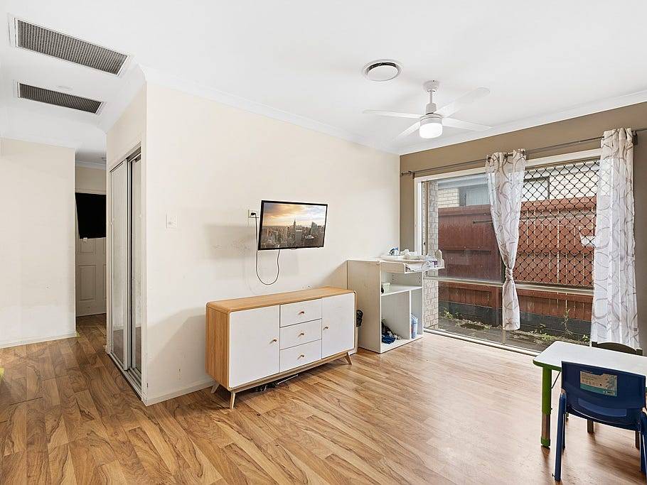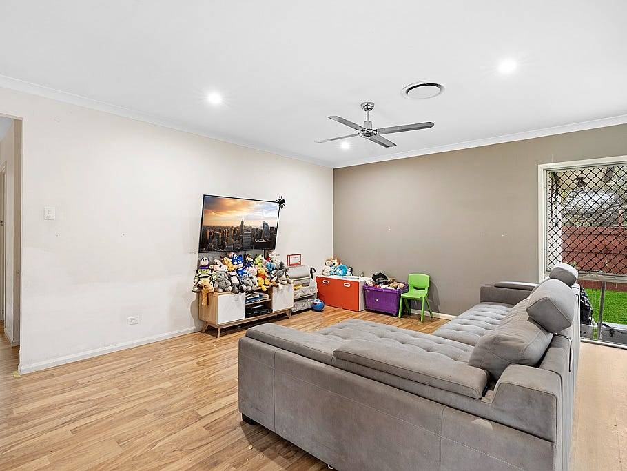 The carpeted media room is also off the main open plan living and has 2 entrances. Currently acting as a 5th room.