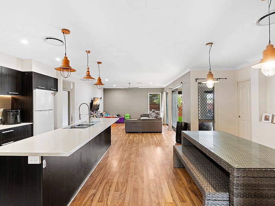 The hub of the home is the central open plan living area featuring a family area, dining space and well-appointed kitchen.