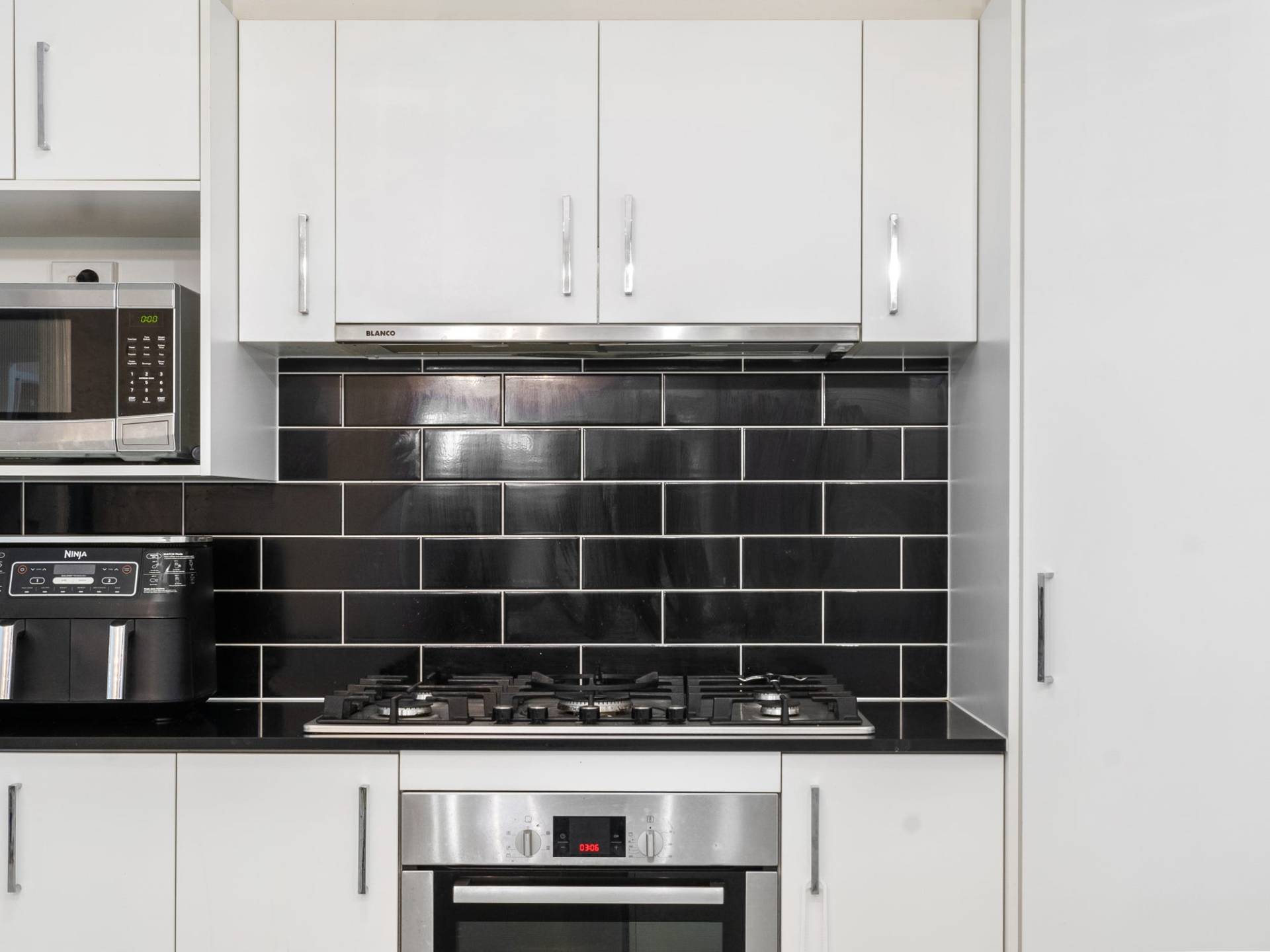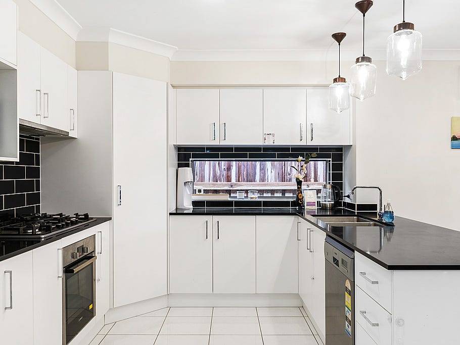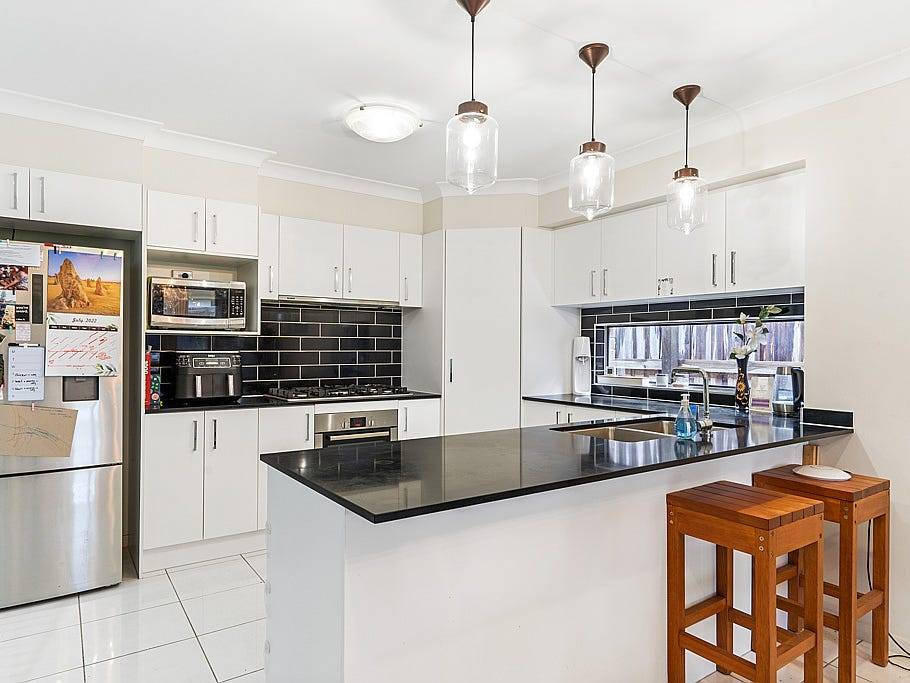 This fantastic home offers a good-sized open plan kitchen, dining and living room. The kitchen has a gas cooktop, electric oven, nice size composite breakfast bar along with plenty of bench and cupboard space. Black stone benches and a horizontal window offering ample light into the kitchen but maintaining privacy.