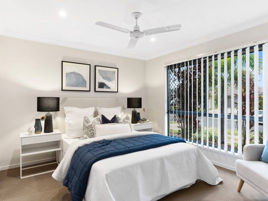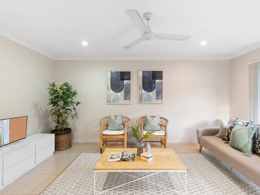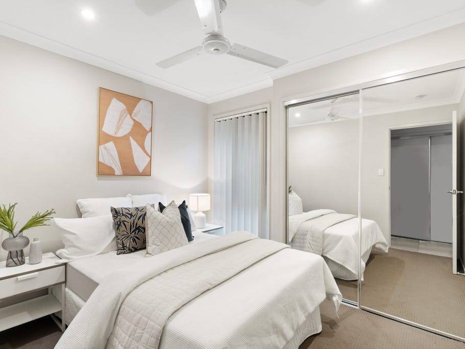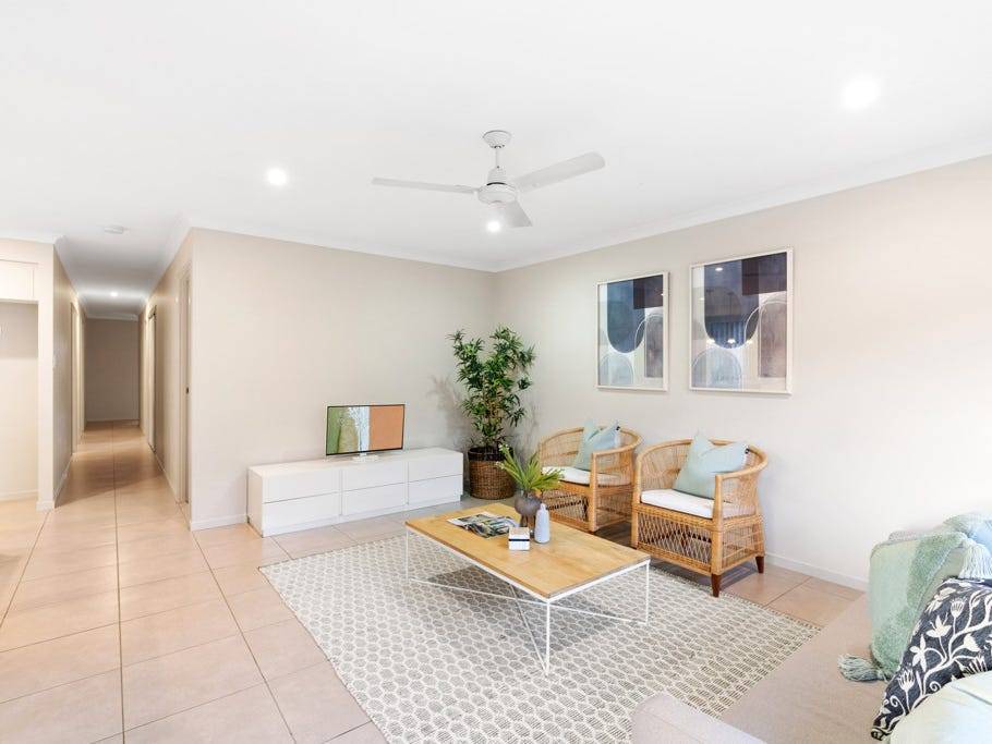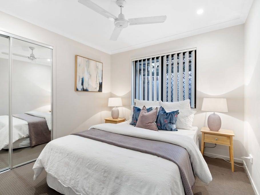 The three additional bedrooms are located towards the centre of the home, with built in robes, ceiling fans and a family bathroom offering lots of natural light.