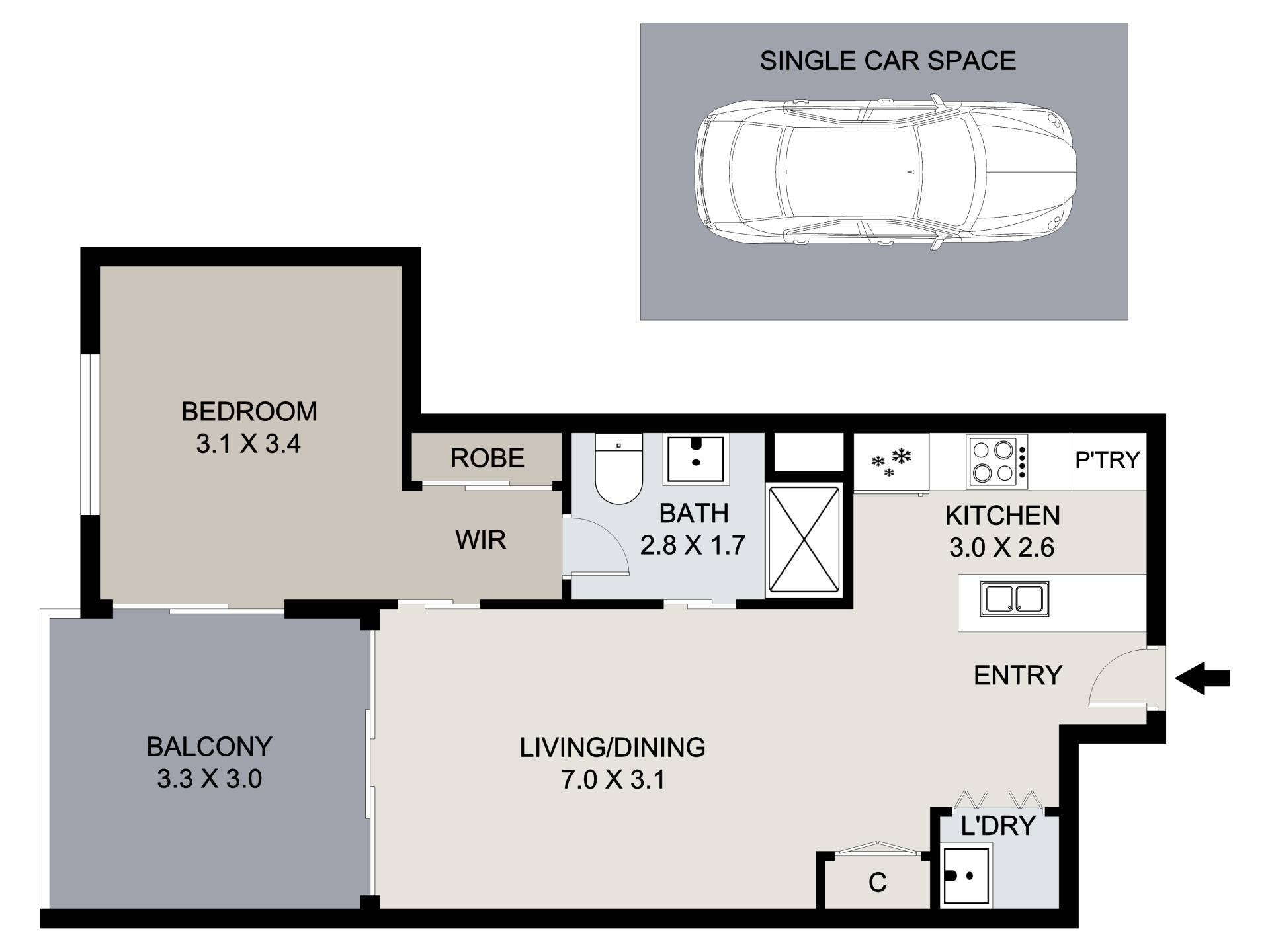 The open plan living area is complemented stunningly with the contemporary kitchen complete with quality finishes and bold tones. The large master suite provides additional access to the balcony and bathroom as well as a huge walk-through wardrobe with plenty of storage space.